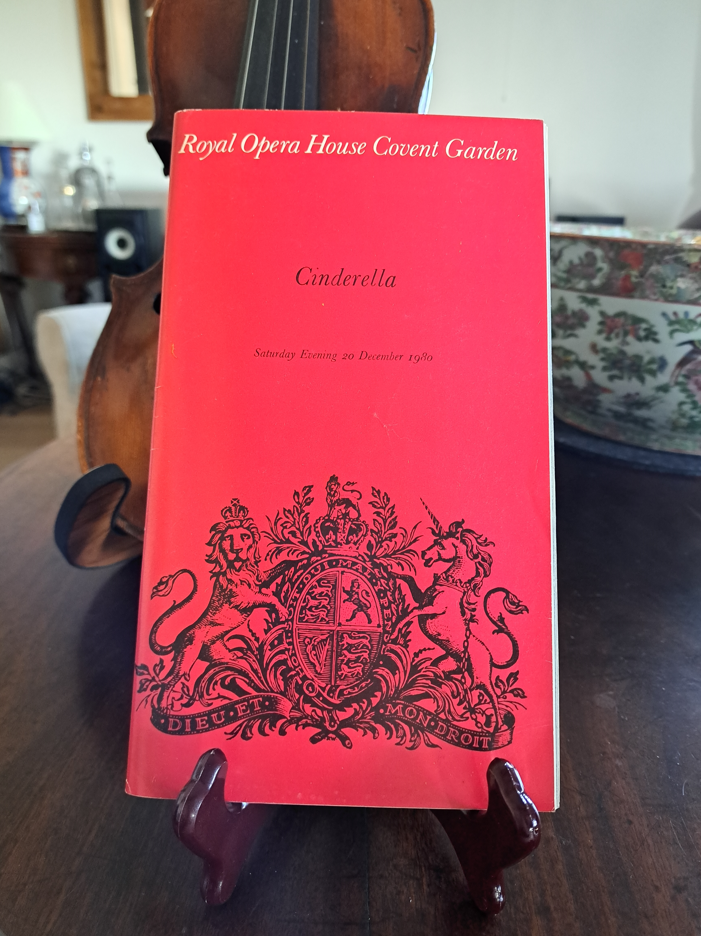 Red official programme for the performance by the Royal Ballet of Cinderella by Sergey Prokoviev at the Royal Opera House, Covent Garden London on Saturday evening 20 December 1980. Cinderella danced by Jennifer Penney.