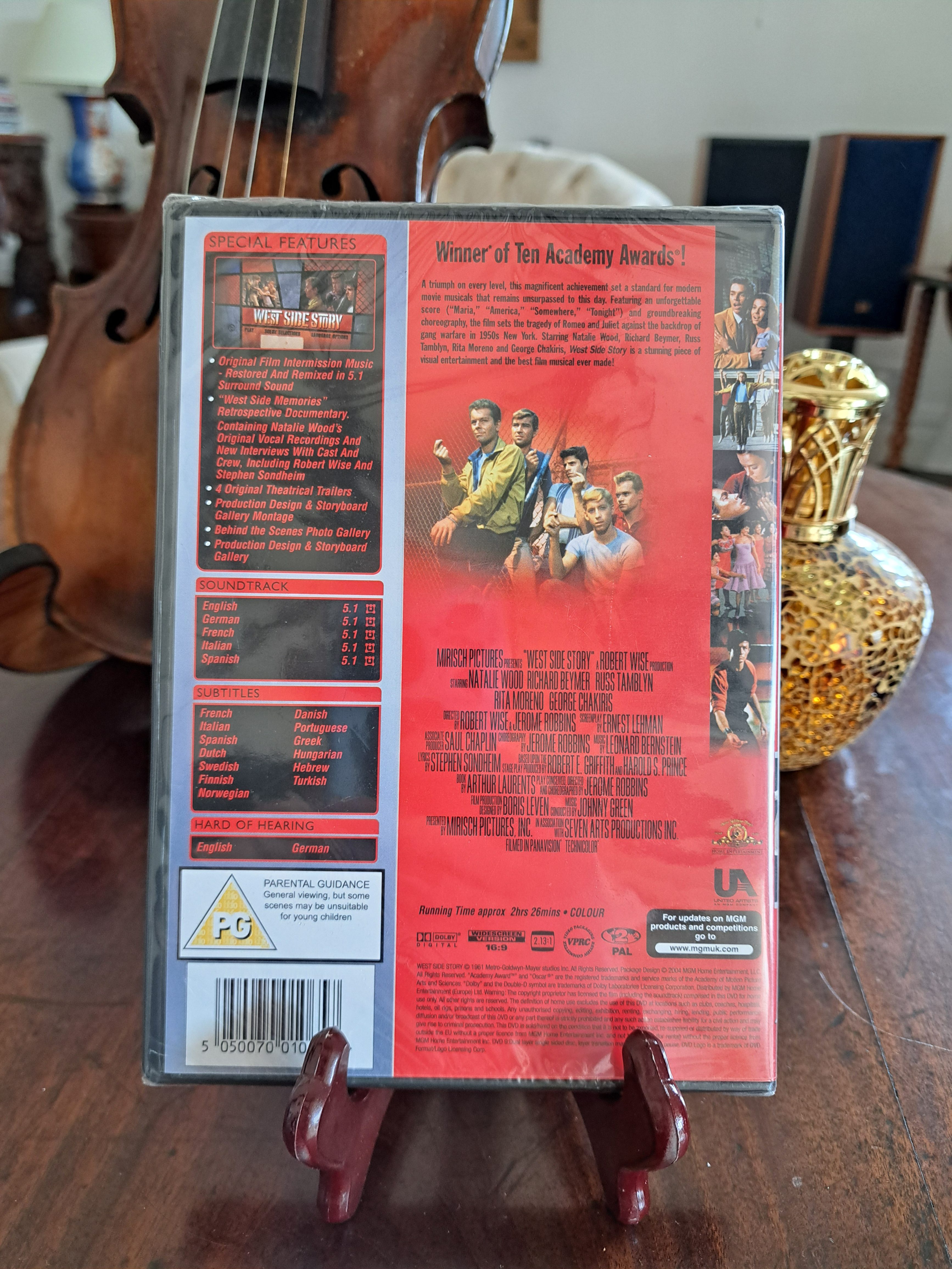 This is a sealed, special edition double disc DVD. The winner of ten Academy Awards. An all-star cast now on DVD. Best Picture 1961. 2 hours 26 minutes. Stephen Sondheim. Original score restored and remixed. Natalie Wood, Richard Beymer, Russ Tamblyn and Rita Moreno. Dolby Digital. Widescreen 16:9.