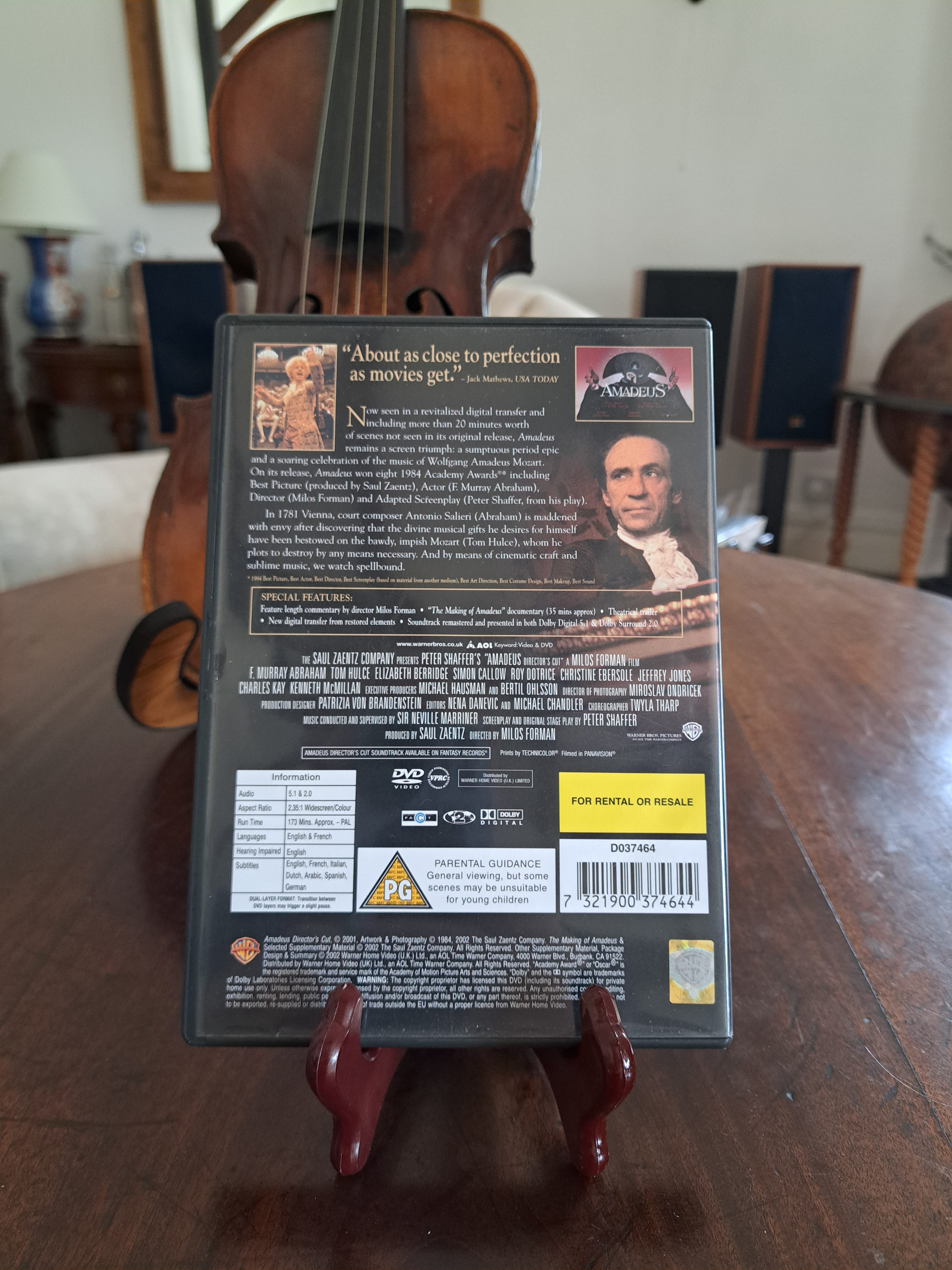 Amadeus Directors Cut. Two disc DVD special edition. 20 minutes of additional footage and restored and remastered picture and sound. 173 minutes. Special features. Widescreen.