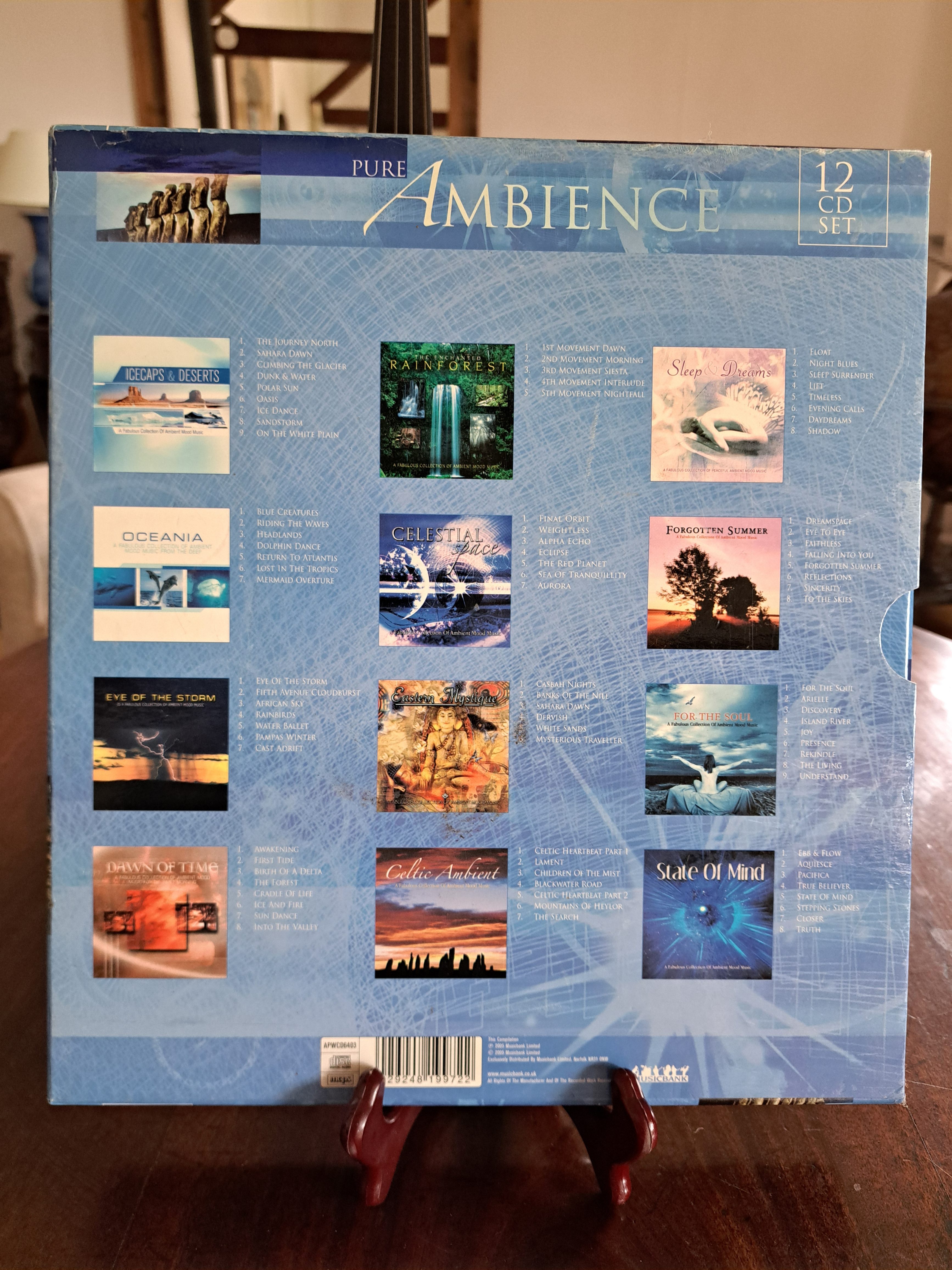 A fine 12 CD box set of ambient mood music perfect for relaxation, spa and chill our scenarios. Published in 2005 and presented in a large display box. CDs include Oceania, Rainforest, State of Mind, For the Soul and Forgotten Summer.