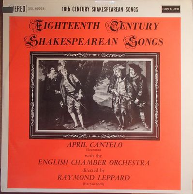 April Cantelo – Eighteenth Century Shakespearean Songs UK , 1961 , SOL 60036 , Vinyl 12″ , Classical, Stage & Screen , A1. Take, O Take Those Lips Away