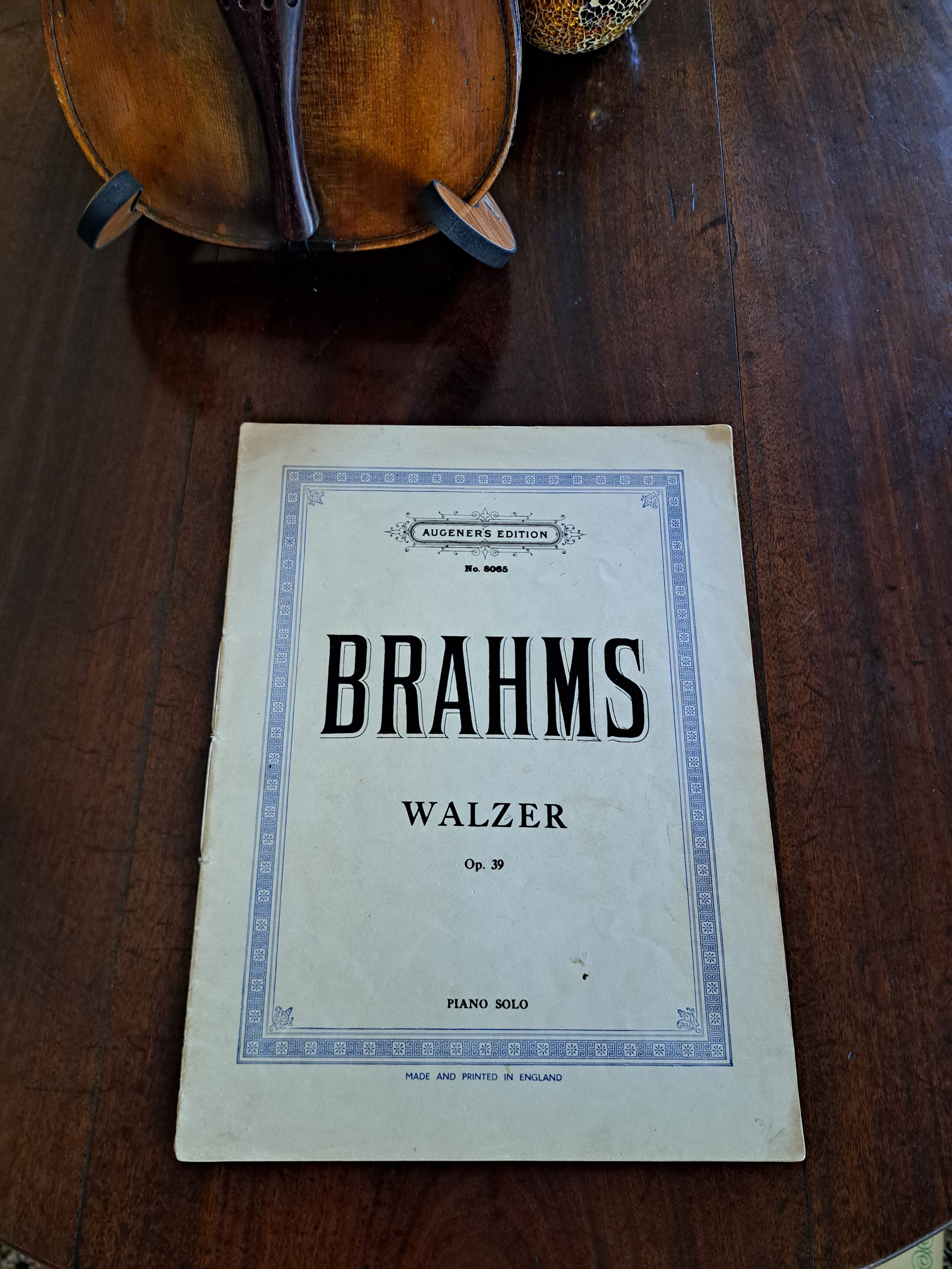 Sheet music. Brahms Walzer Opus 39 Piano Solo. Augener’s Edition No. 8065. 16 pages.