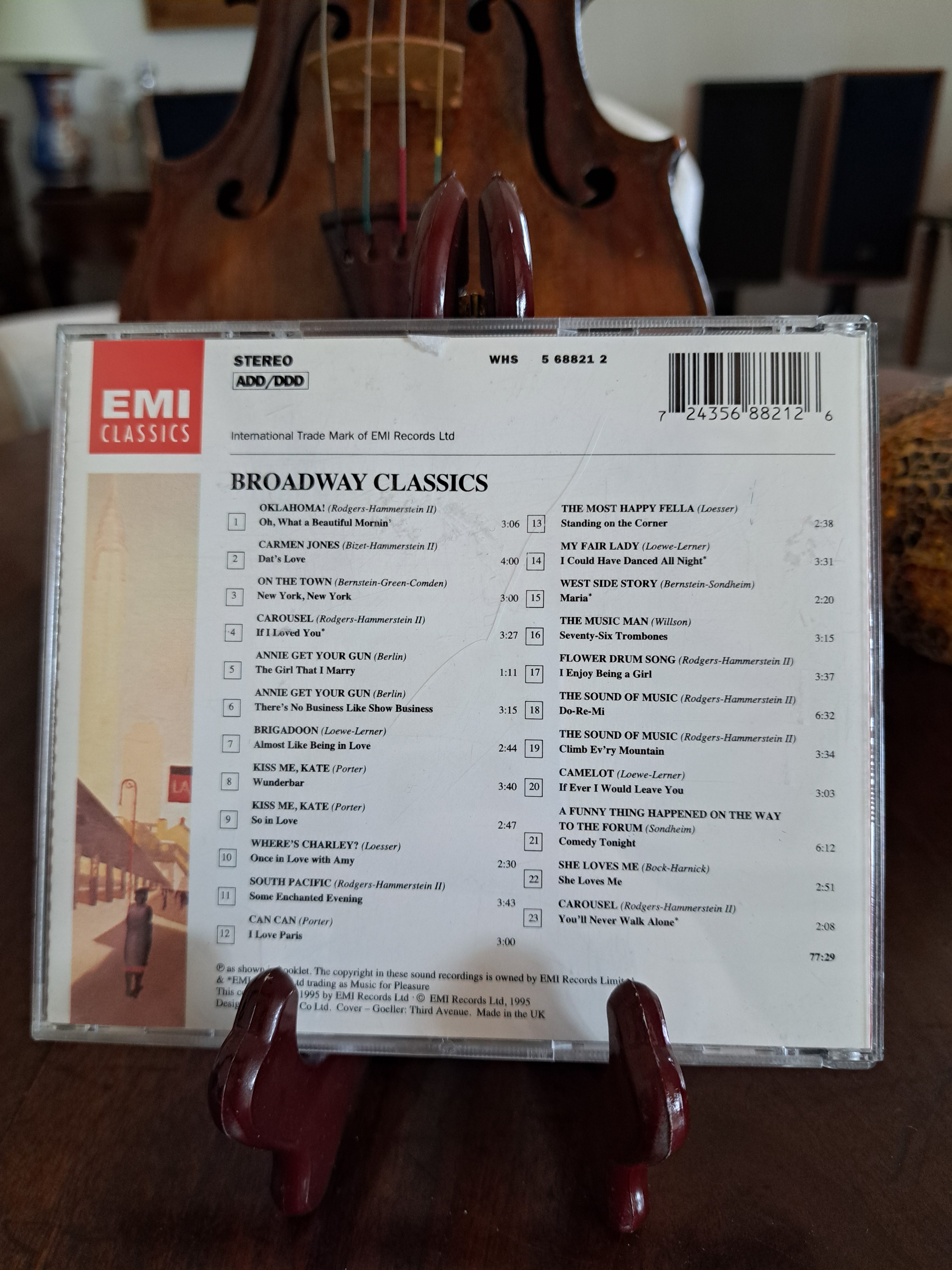 An EMI Classics CD of the music from the shows Oklahoma!, West Side Story and Carousel. 23 tracks. 77.29 minutes playing time. Published 1995.