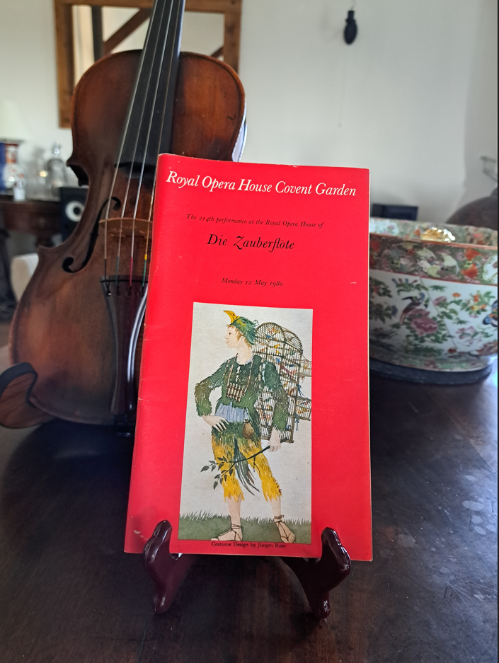 The red official programme for the (214th) performance of Die Zauberflote at the Royal Opera House, Covent Garden London on Monday 12 May 1980.