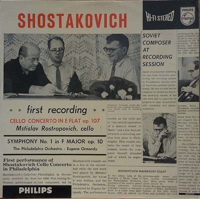Dmitri Shostakovich – Cello Concerto In E Flat Op. 107 / Symphony No. 1 In F Major Op. 10 UK , 1960 , 835 549 AY , Vinyl 12″ , Classical , Concerto For Cello And Orchestra In E Flat Op. 107