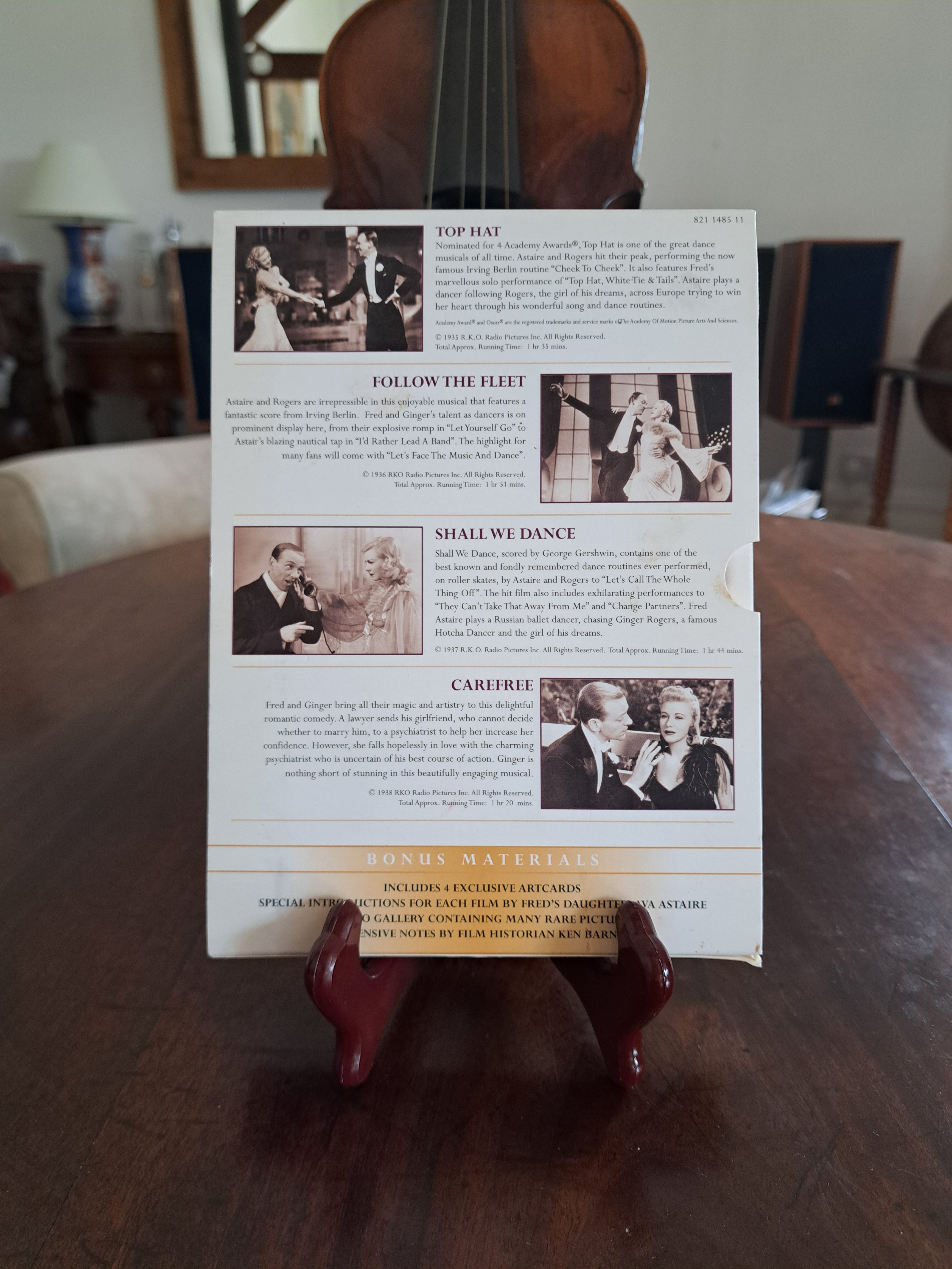 A fabulous DVD box set of four classic films featuring Fred Astaire and Ginger Rogers as well as bonus materials. The films included are Top Hat (1935 -1 hour 35 mins), Follow the Fleet (1936 – 1 hour 51 mins), Shall We Dance (1937 – 1 hour 44 mins) and Carefree (1938 – 1 hour…