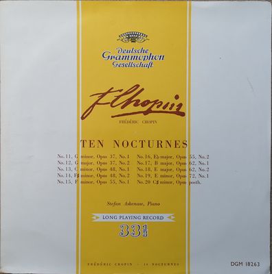 Frederic Chopin – Ten Nocturnes UK , 1956 , DGM 18263 , Vinyl 12″ , Classical , A1. No. 11 In G Minor, Op. 37, No. 1