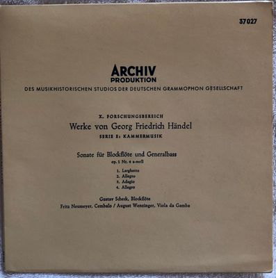 Georg Friedrich Handel – Sonate fur Blockflaute und Generalbass op.1 Nr. 4 a-moll Germany , 1950 , 37027 EPA , Vinyl 7″ , Classical , A1. Larghetto A2. Allegro B1. Adagio B2. Allegro