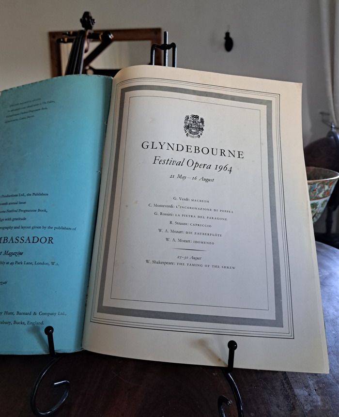 The original programme book from the Glyndebourne Festival Opera in 1964. This programme contains essential information about the performances, cast and crew ad well as superb insights into the world of opera. Beautifully designed with high quality pages and production. A true piece of English operatic history. In super condition for a programme over 60 years old.