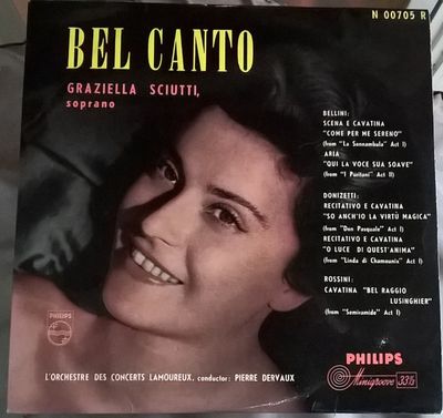 Graziella Sciutti – Bel Canto Netherlands , , N 00705 R , Vinyl 12″ , Classical , A1. Scena E Cavatina “Come Per Me Sereno”