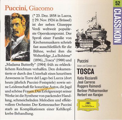 Herbert von Karajan – Classikon 52: Arien Und Szenen Aus Tosca Germany , 1994 , 439 461-2 , CD , Classical ,