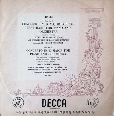 Jacqueline Blancard – Ravel – Piano Concerto For Left Hand In D Major/ Piano Concerto In G Major UK , 1951 , LXT 2565 , Vinyl 12″ , Classical , Concerto In D Major For Left Hand For Piano And Orchestra