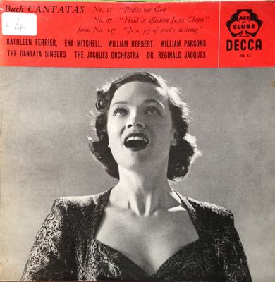 Johann Sebastian Bach – Cantatas – No. 11 “Praise Our God” / No. 67 “Hold In Affection Jesus Christ”, From No. 147 “Jesus, Joy Of Man’s Desiring” UK , 1959 , ACL 52 , Vinyl 12″ , Classical , A1. Cantata No. 11 – “Praise Our God”
