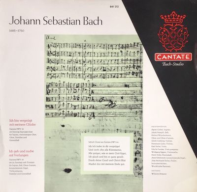 Johann Sebastian Bach – Ich Bin Vergnugt Mit Meinem Glucke, Kantate BWV 84 / Ich Geh Und Suche Mit Verlangen, Kantate BWV 49 Germany , 1962 , 641 212 , Vinyl 12″ , Classical , A. Ich Bin Vergnügt Mit Meinem Glücke, Kantate BWV 84