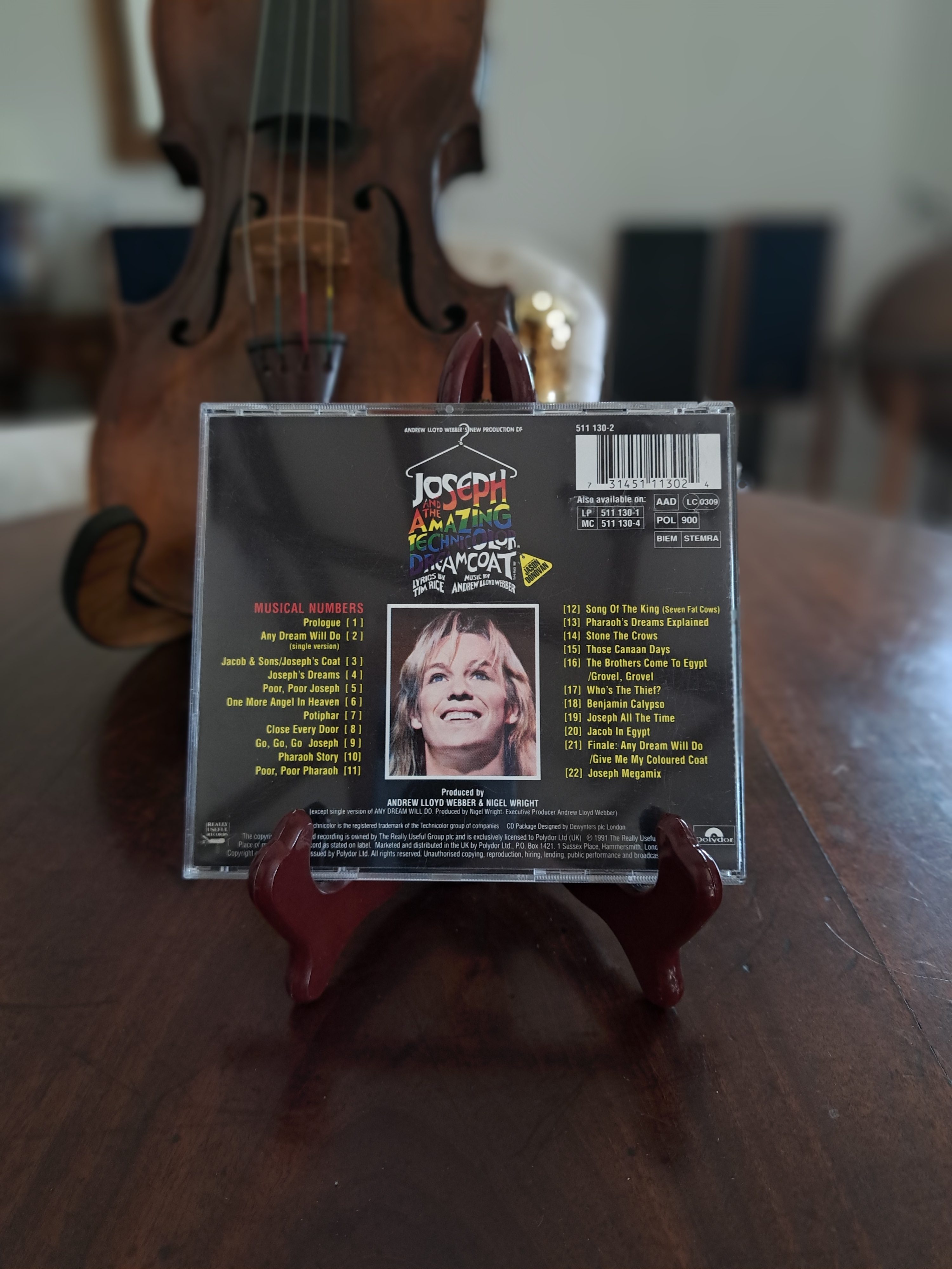 CD. Joseph and the Amazing Technicolor Dreamcoat by Andrew Lloyd Webber. Starring Jason Donovan. 22 musical numbers. Published 1991.