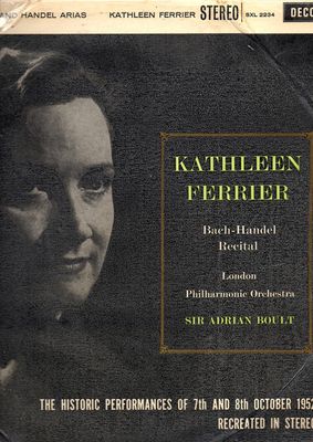Kathleen Ferrier – A Recital Of Bach And Handel Arias UK , 1960 , SXL 2234 , Vinyl 12″ , Classical , Bach