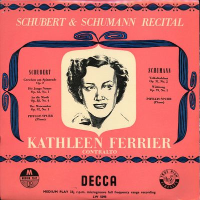 Kathleen Ferrier – Schubert & Schumann Recital UK , 1956 , LW 5098 , Vinyl 12″ , Classical , A1. Gretchen Am Spinnrade Op.2