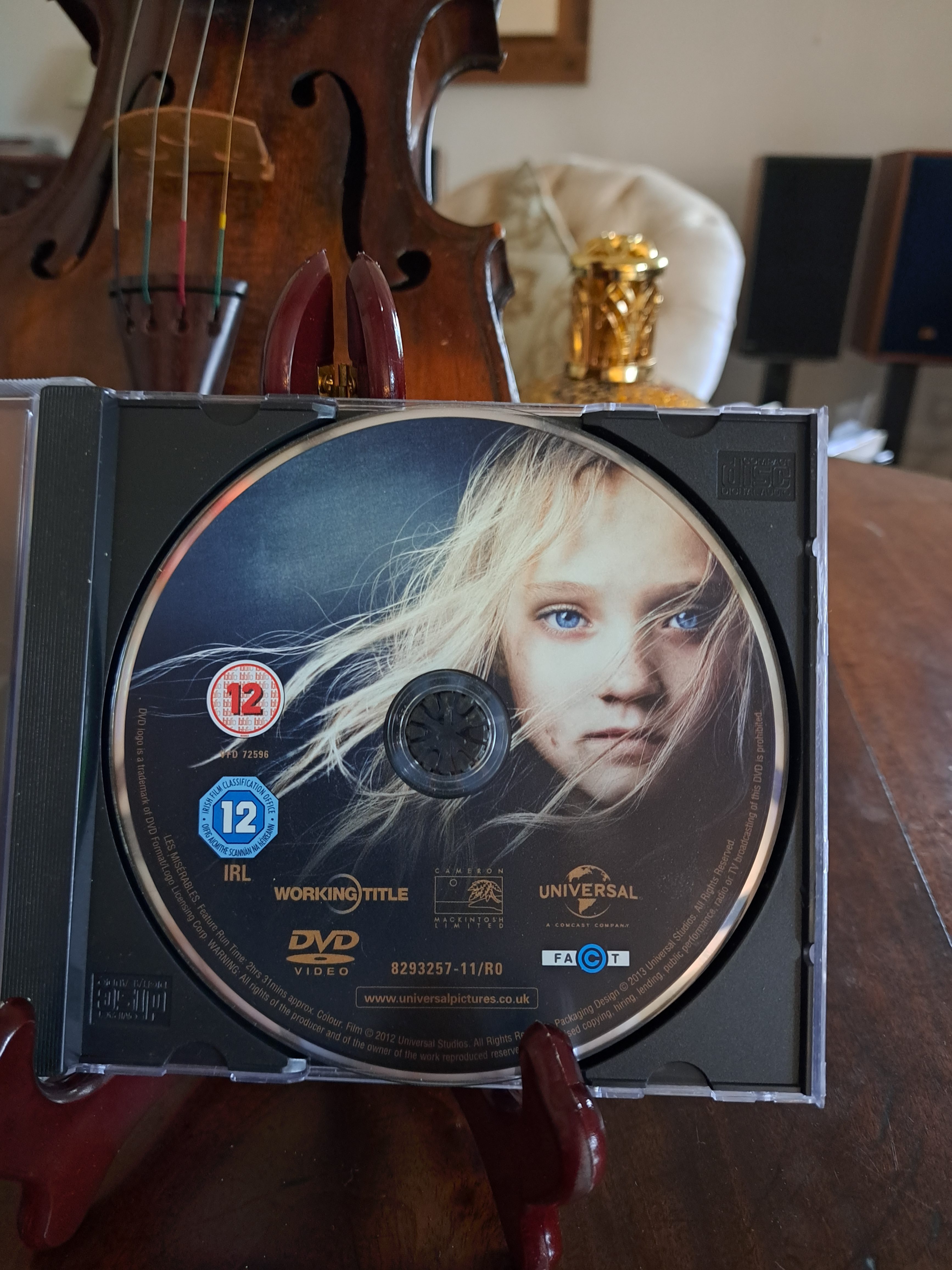 The 2012 multi-award-winning film of Les Miserables starring Hugh Jackman and Anne Hathaway with Russell Crowe and many many others. Lacking the original case and booklet so presented here in a CD case.