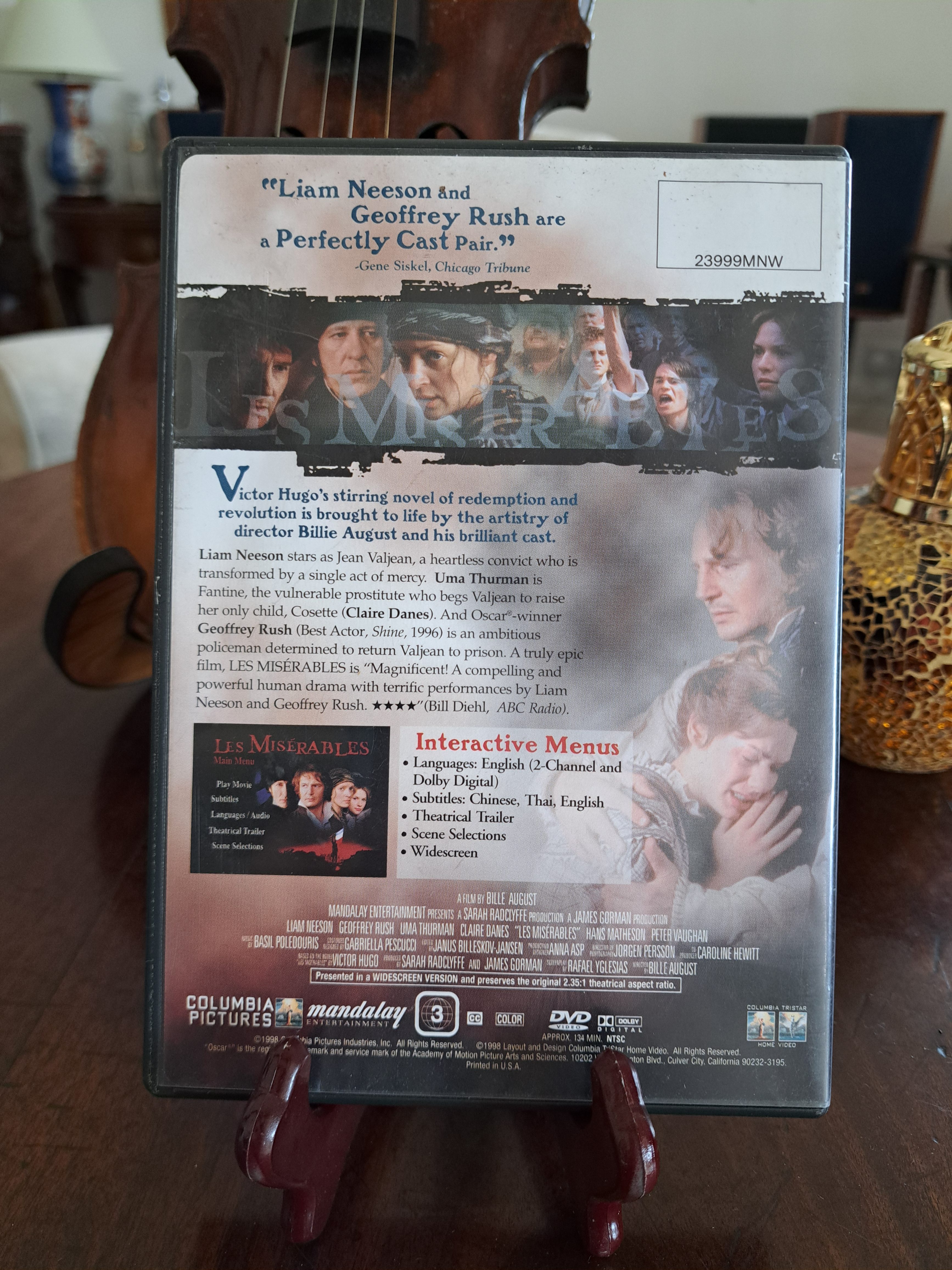 The film adaptation of Victor Hugo’s classic novel Les Miserables. Please note this is not the musical version. Starring Liam Neeson and Um Thurman alongside the superb Geoffrey Rush. 2:35:1 theatrical aspect ratio from 1998. A magnificent and compelling human drama with terrific performances.