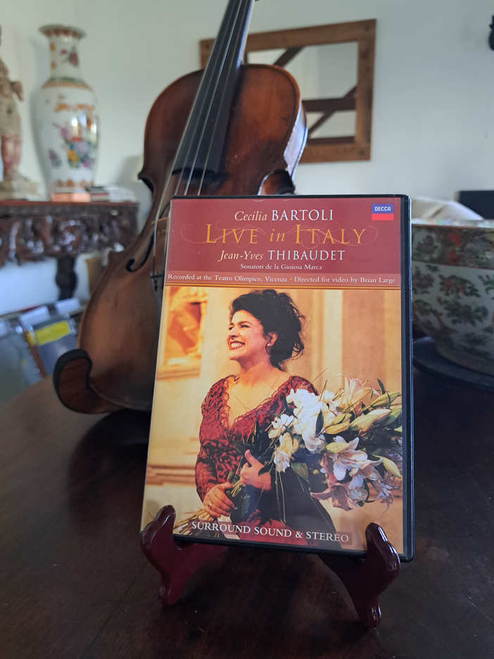 DVD recorded at the Teatro Olimpico, Vicenza. Directed by Brian Large. Published by Decca. Surround sound and stereo. ll regions. 16:9 aspect. 110 minutes. Cecilia Bartoli mezzo-soporano, Jean-Yves Thibaudet piano. Sonatori de la Gioiosa Marca. Music from Caccini, Handel, Vivaldi, Mozart, Schubert, Viardot, Berlioz, Bellini, Donizetti, Rossini, Giordani, Montsalvatge and Bizet.