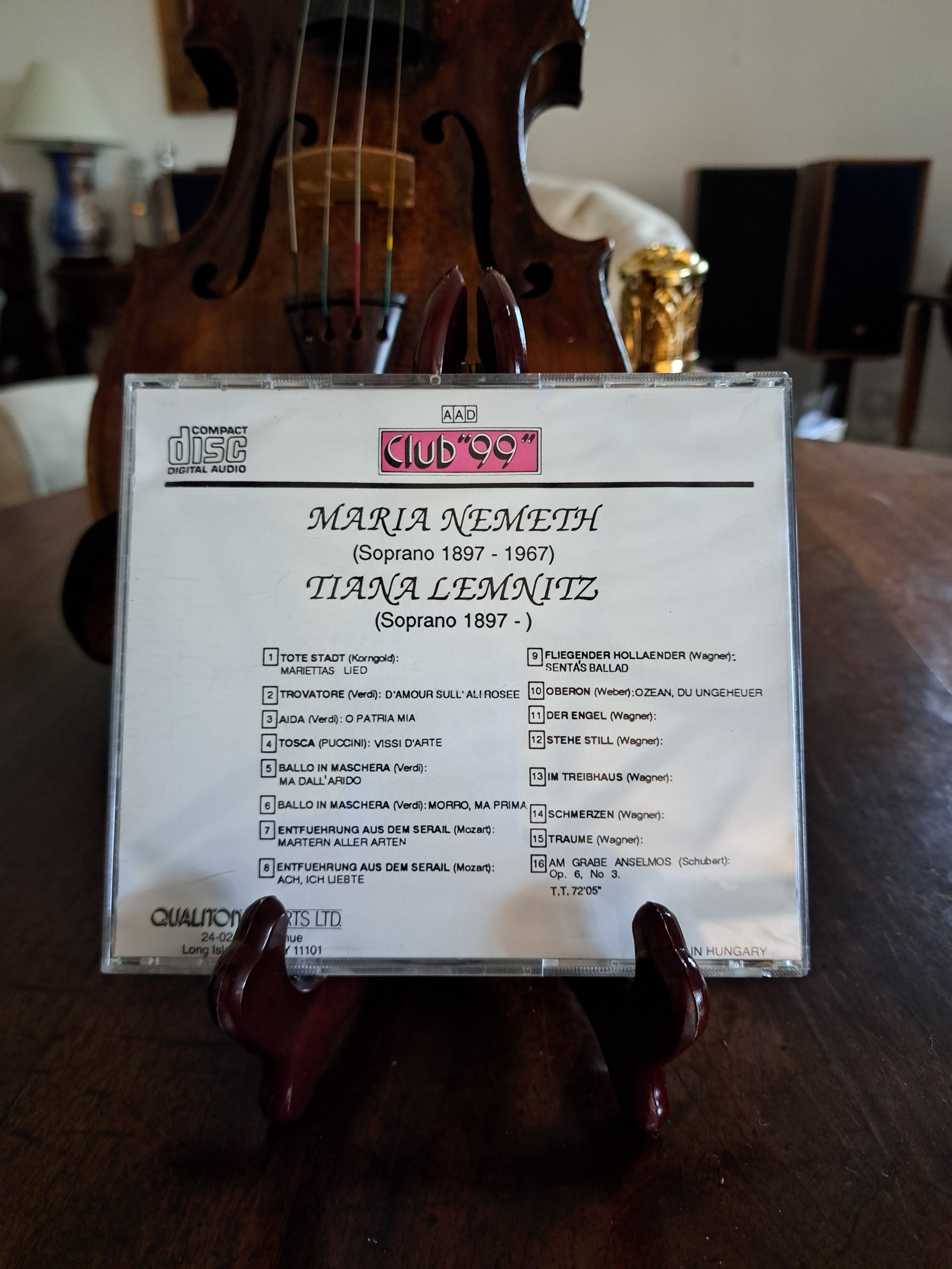 CD by club 99. Nemeth and Lemnith – Sopranos. Historical recordings. 16 tracks. Published 1991.