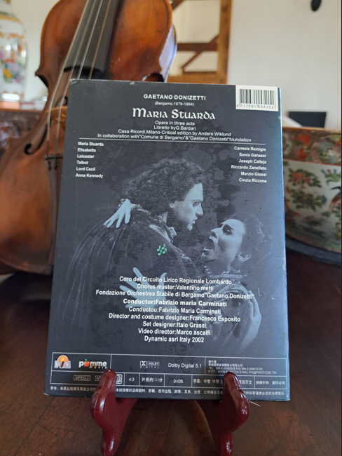 DVD of Donizetti’s (often listed as two act) three act tragic opera Mari Stuarda based on the 1800 play Maria Stuart. The opera originally premiered in 1835 at La Scala in Milan. This production is from 2002. Dolby Digital 5.1.
