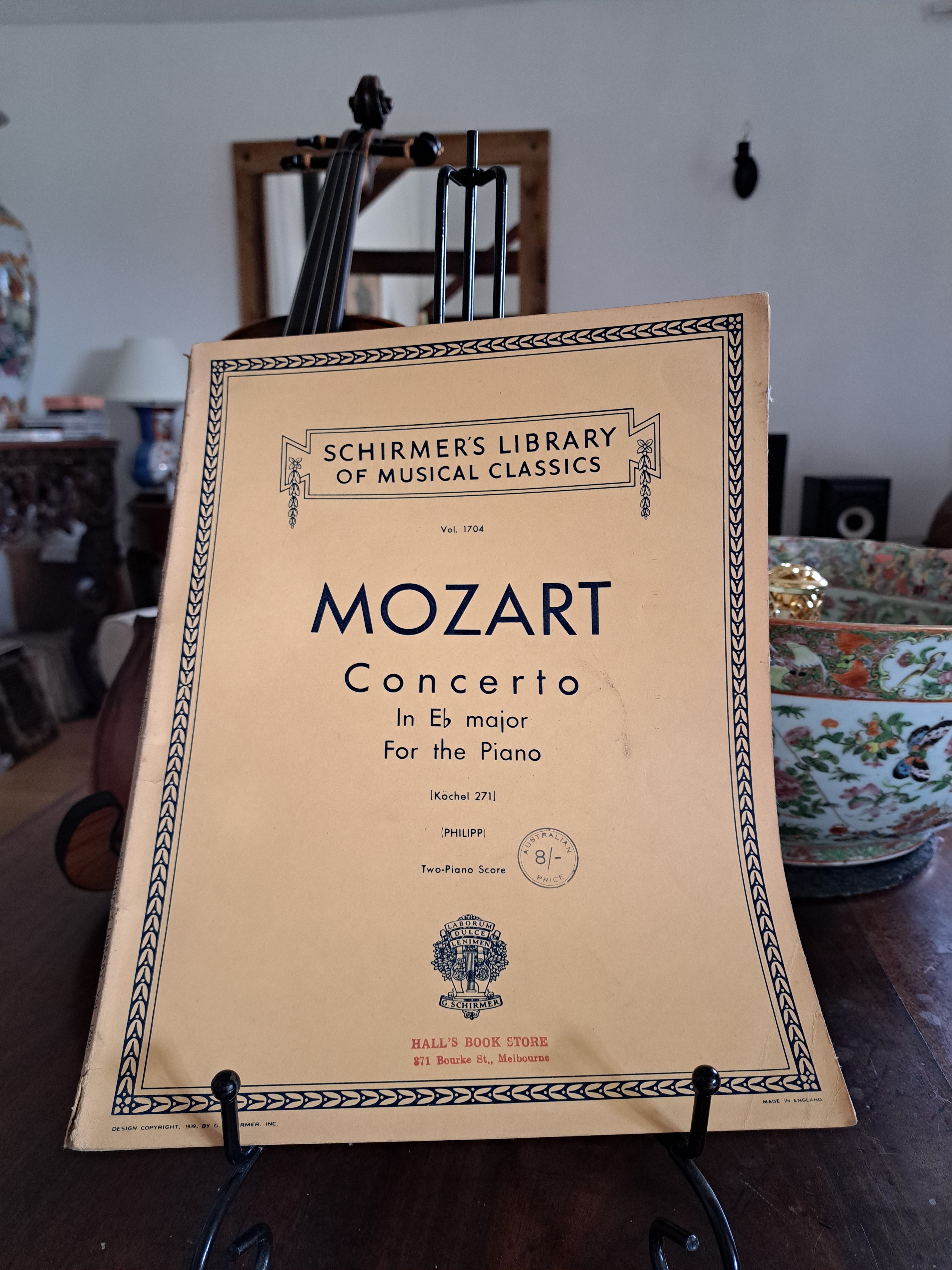 Schirmer’s Library of Musical Classics volume 1704. Two-piano score. Australian stamp. Mozart Concerto in E Flat Major for the Piano. 79 pages. Unmarked.
