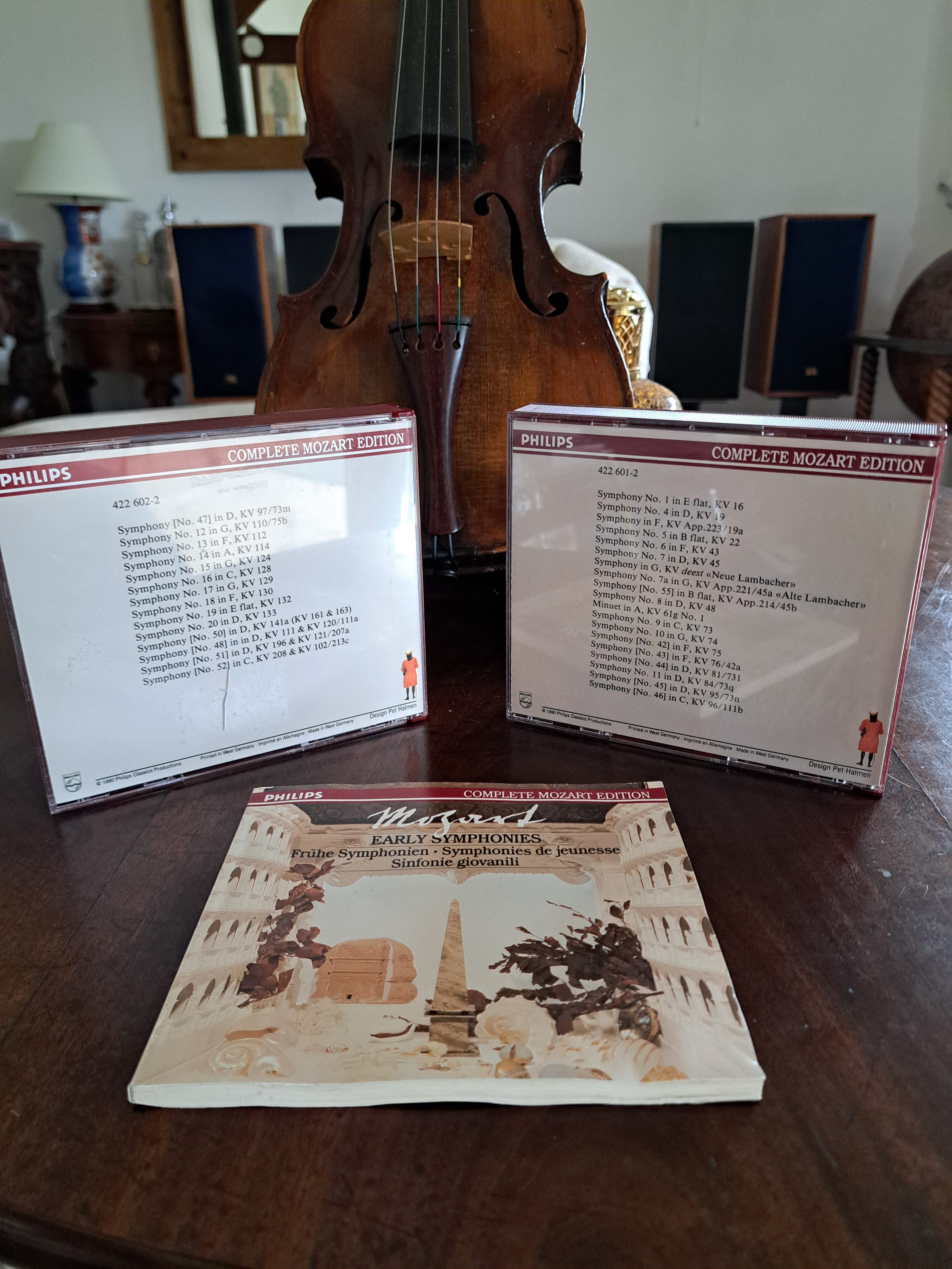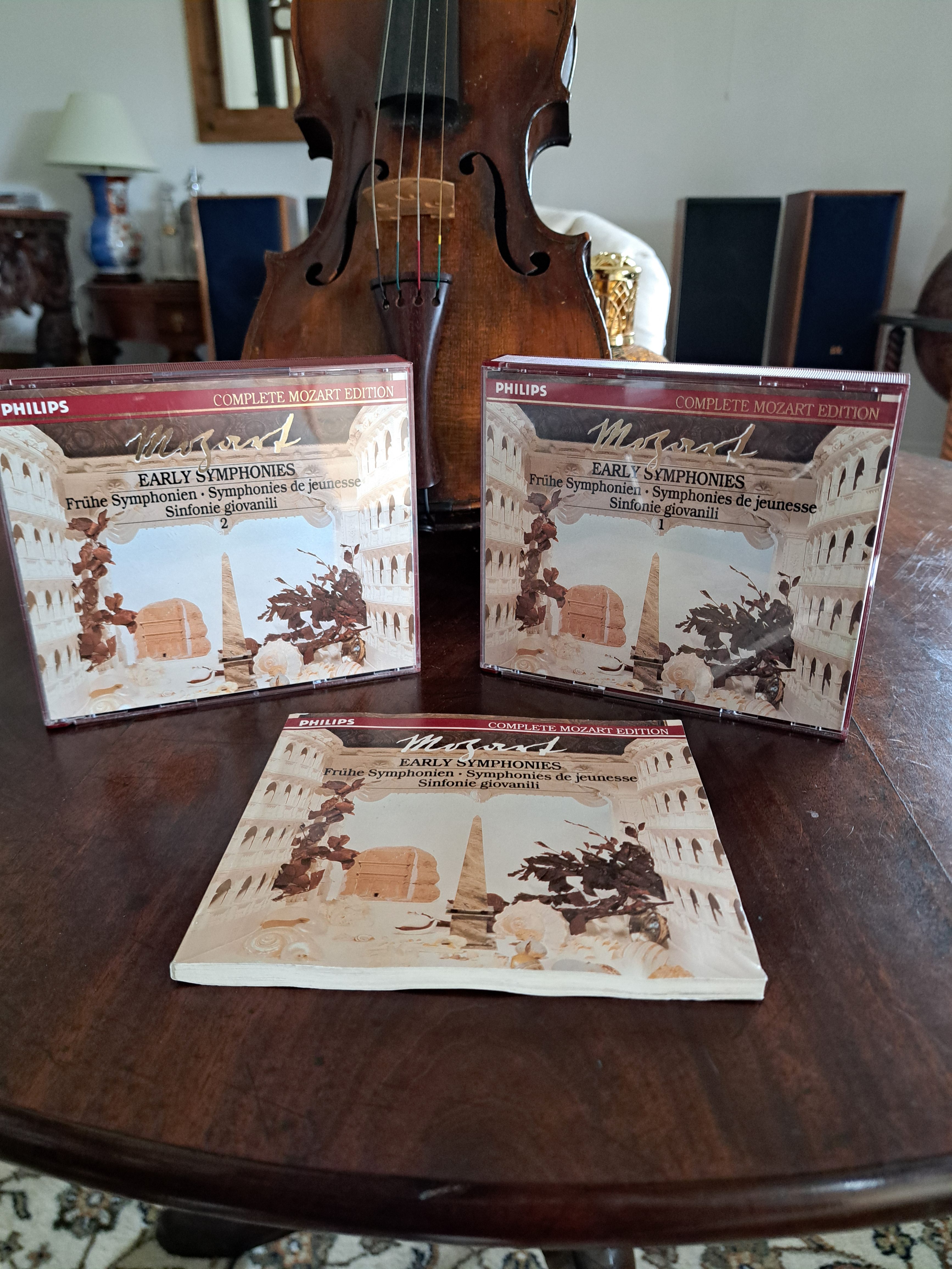 Two CD box sets plus substantial 120 page booklet. Mozart Early Symphonies. Box sets 1 and 2. Published 1990 by Philips. 6 CDs.