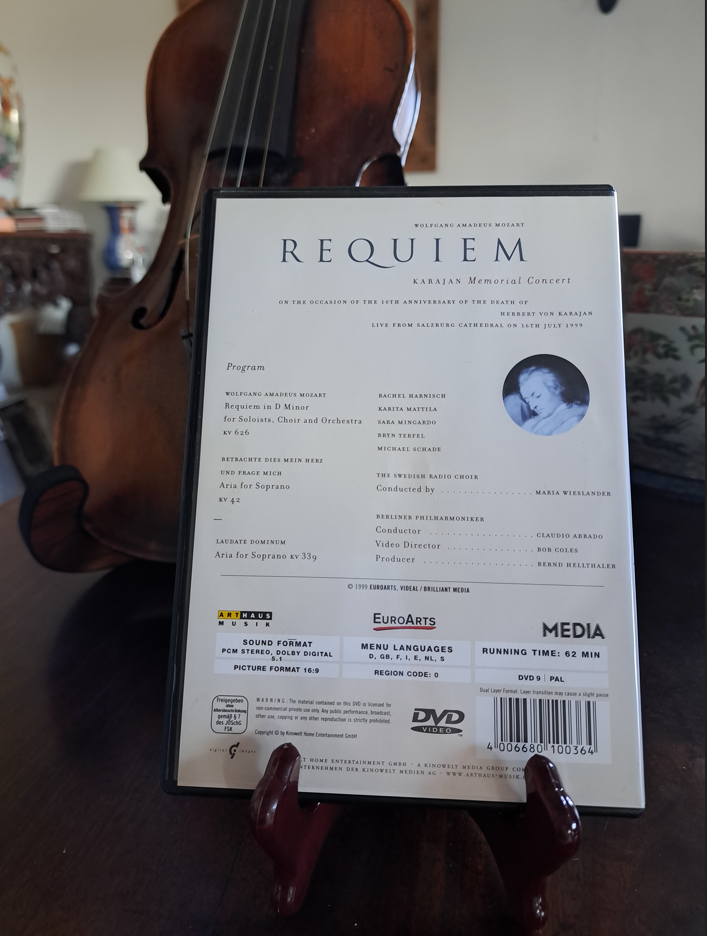 DVD. Mozart Requiem: The Herbert Von Karajan memorial concert on the 10th anniversary of his death. Aria for Soprano – Laudate Dominum. Artists include Karita Matilla, Sara Mingardo, Michael Schade and Bryn Terfel. Conductor Claudio Abbado. Live from Salzburg Cathedral on 16th July 1999. 62 minutes. Region code 0. Format 16:9. PCM stereo and Dolby…