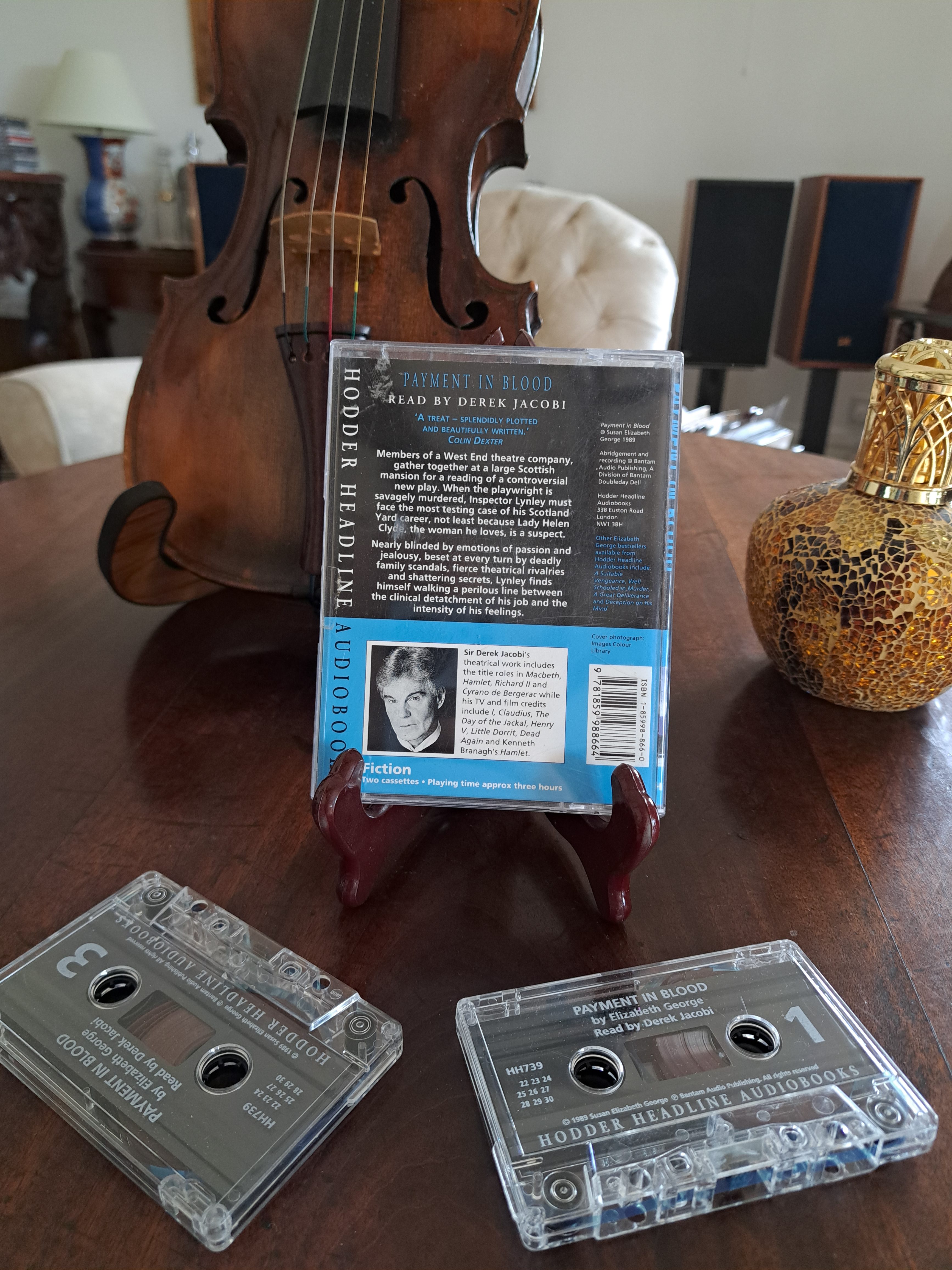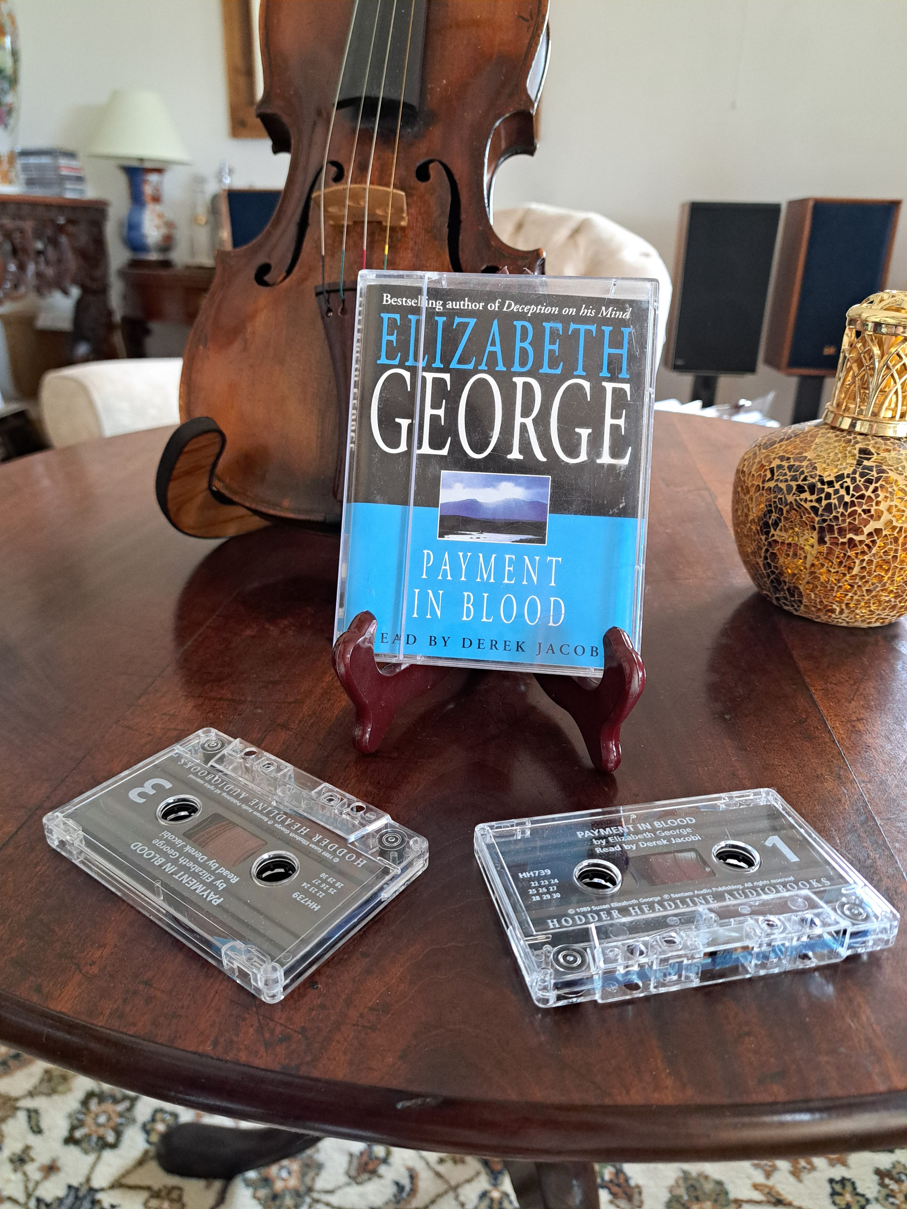 A twin cassette audio book of the novel Payment in Blood by the best selling author Elizabeth George. Read by the legendary actor Derek Jacobi. 3 hours playing time. Published 1989 by Hodder Headline Audio books.