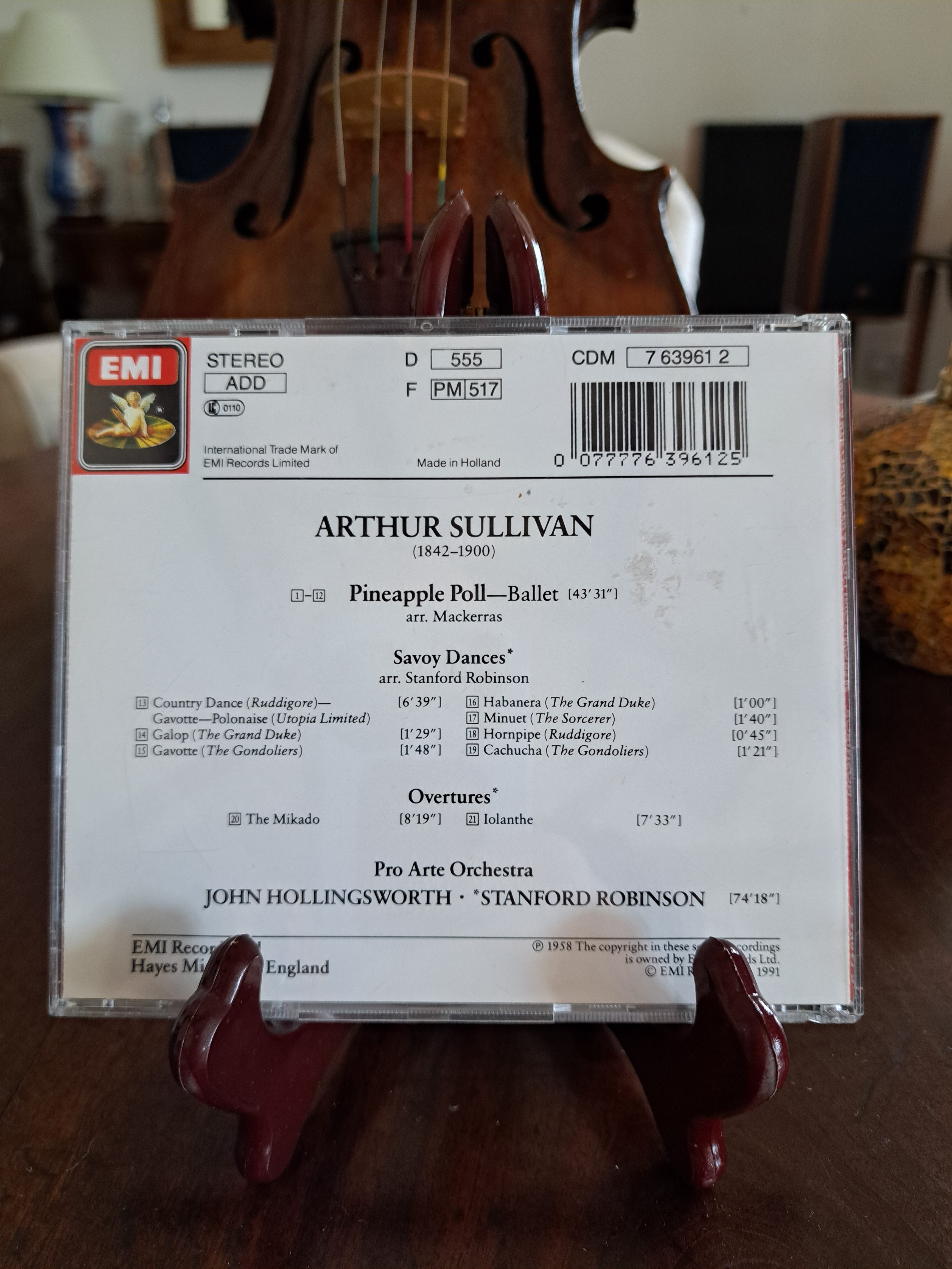 EMI CD recorded 12958 and published 1991. Running time 74.18 minutes. Pro Arte Orchestra. Includes: Pineapple Poll – Ballet Savoy Dances Overtures – The Mikado – Iolanthe