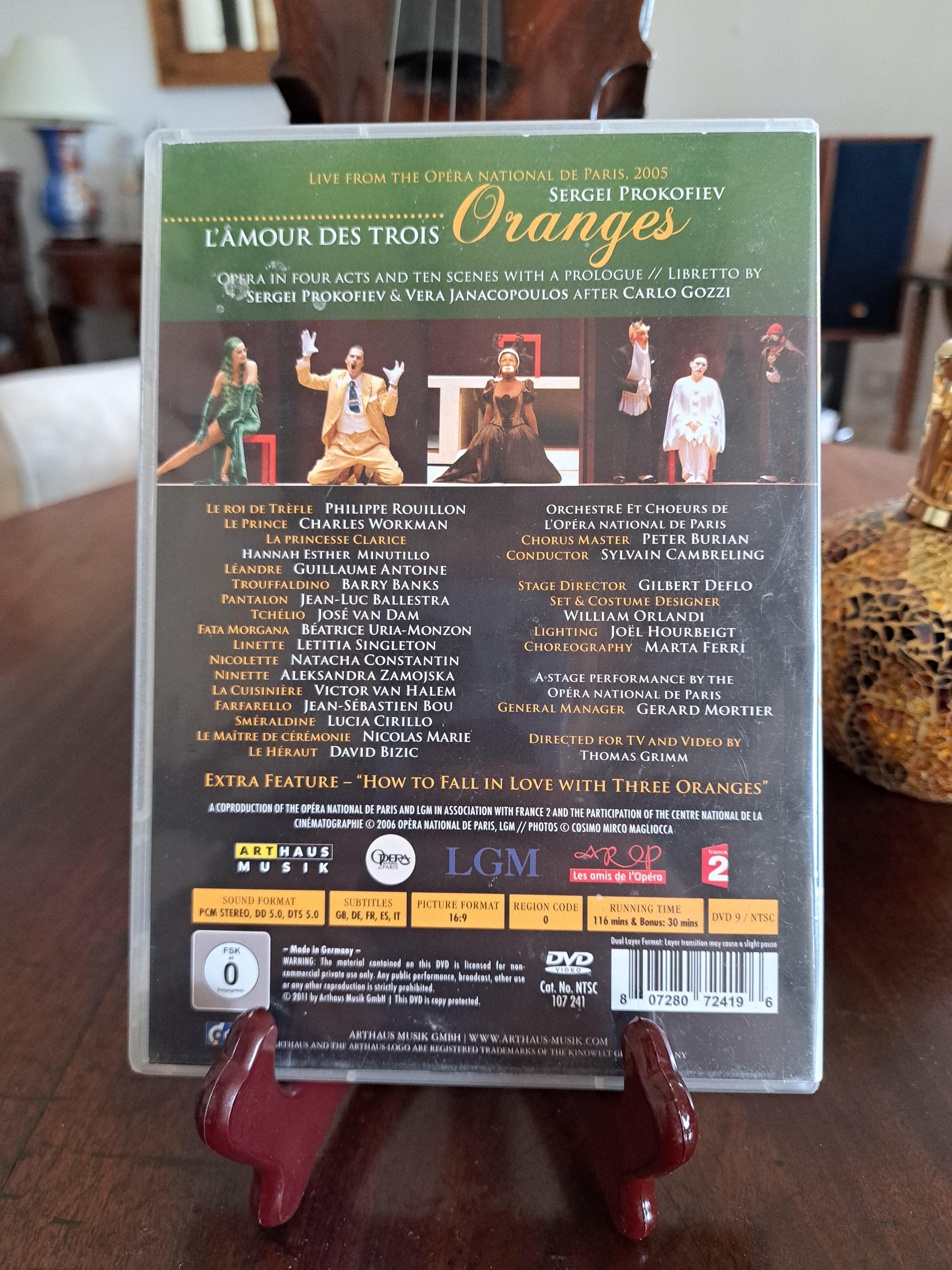 A lovely two-performance collection by Prokofiev that an previous owners has put together. This box set includes: L’Amour Des Trois Oranges – 2005 from the Opera National de Paris (116 minutes) 2 DVD discs of War and Peace by Prokofiev from the Opera National de Paris 2000 (159 minutes)