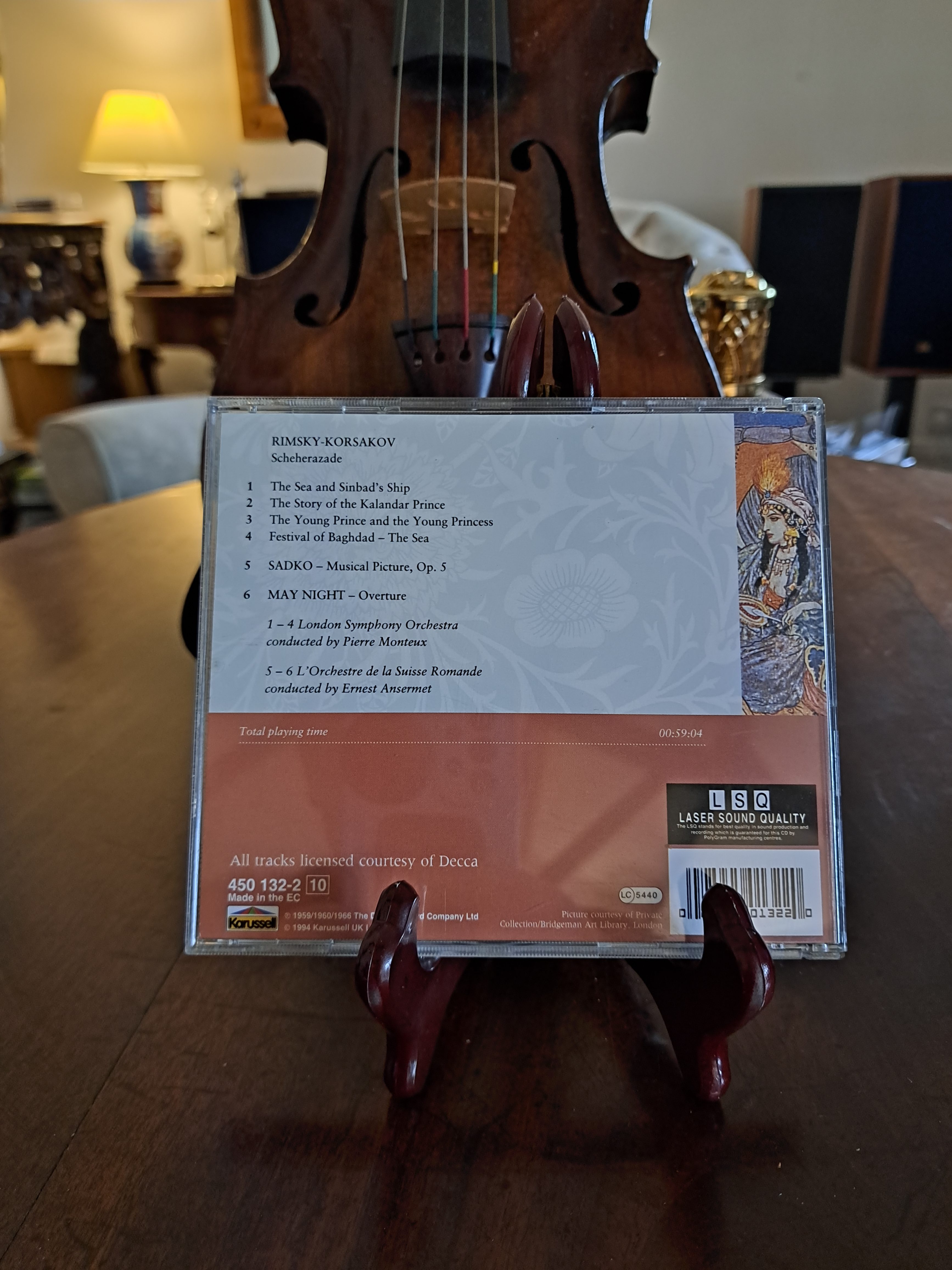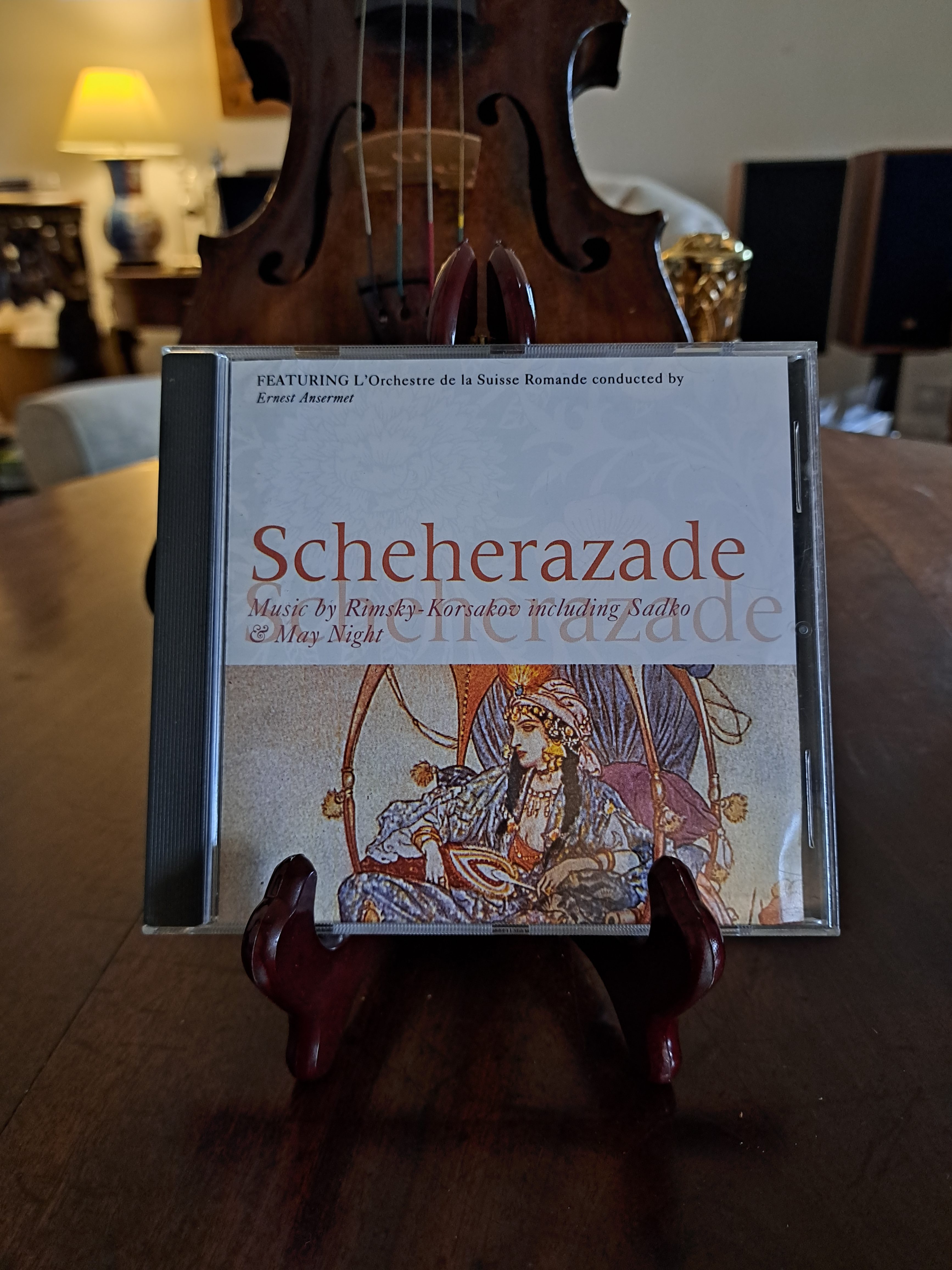 CD. Scheherazde by Rimsky-Korsakov. Featuring the l’orchestra de la Suisse Romande. 50.04 minutes. 1994 minutes.