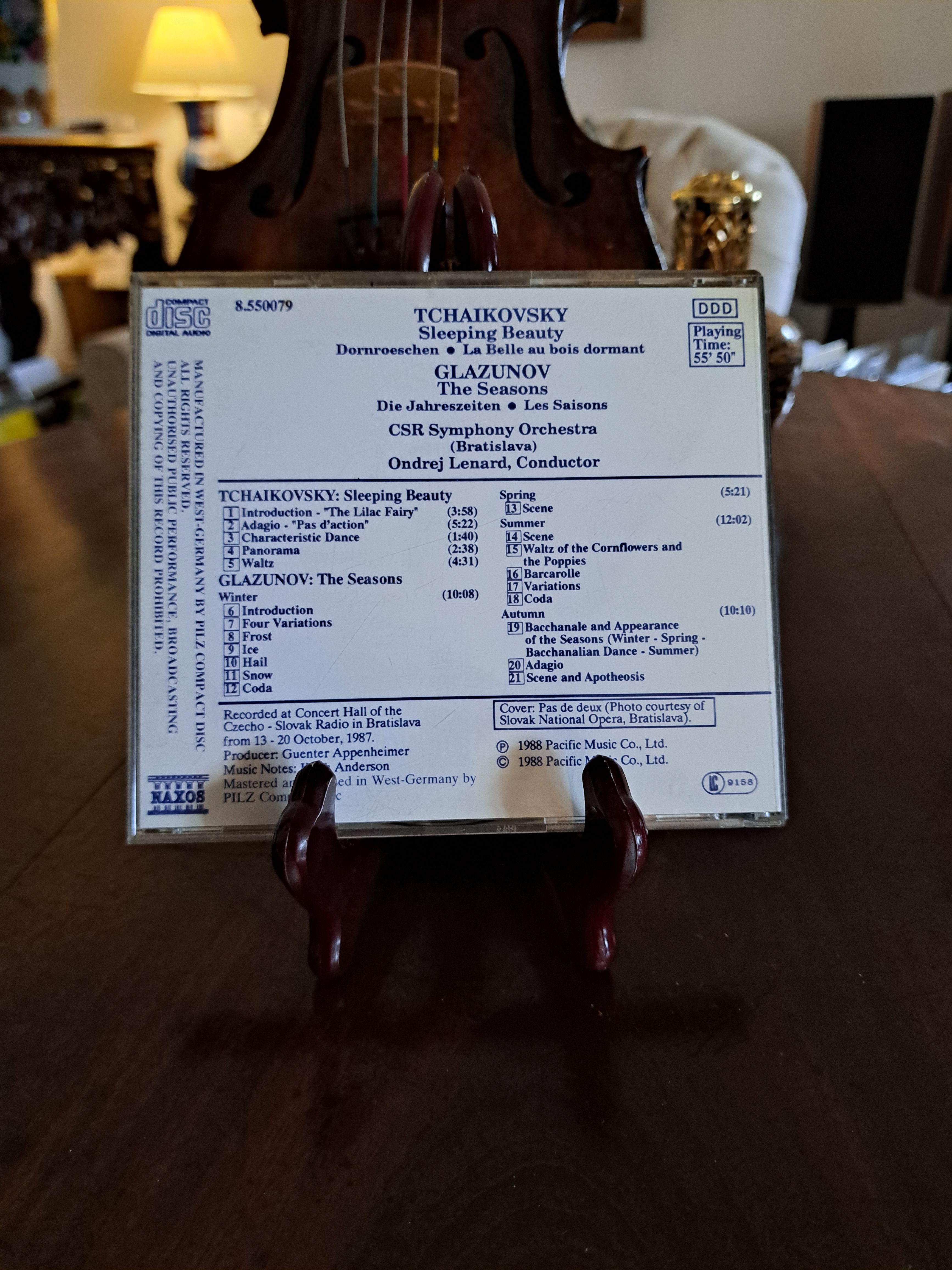 CD. Sleeping Beauty – Tchaikovsky. The Seasons – Glazunov. CSR Symphony Orchestra. 1987 recording. 55.50 minutes. 21 tracks. Highlights.