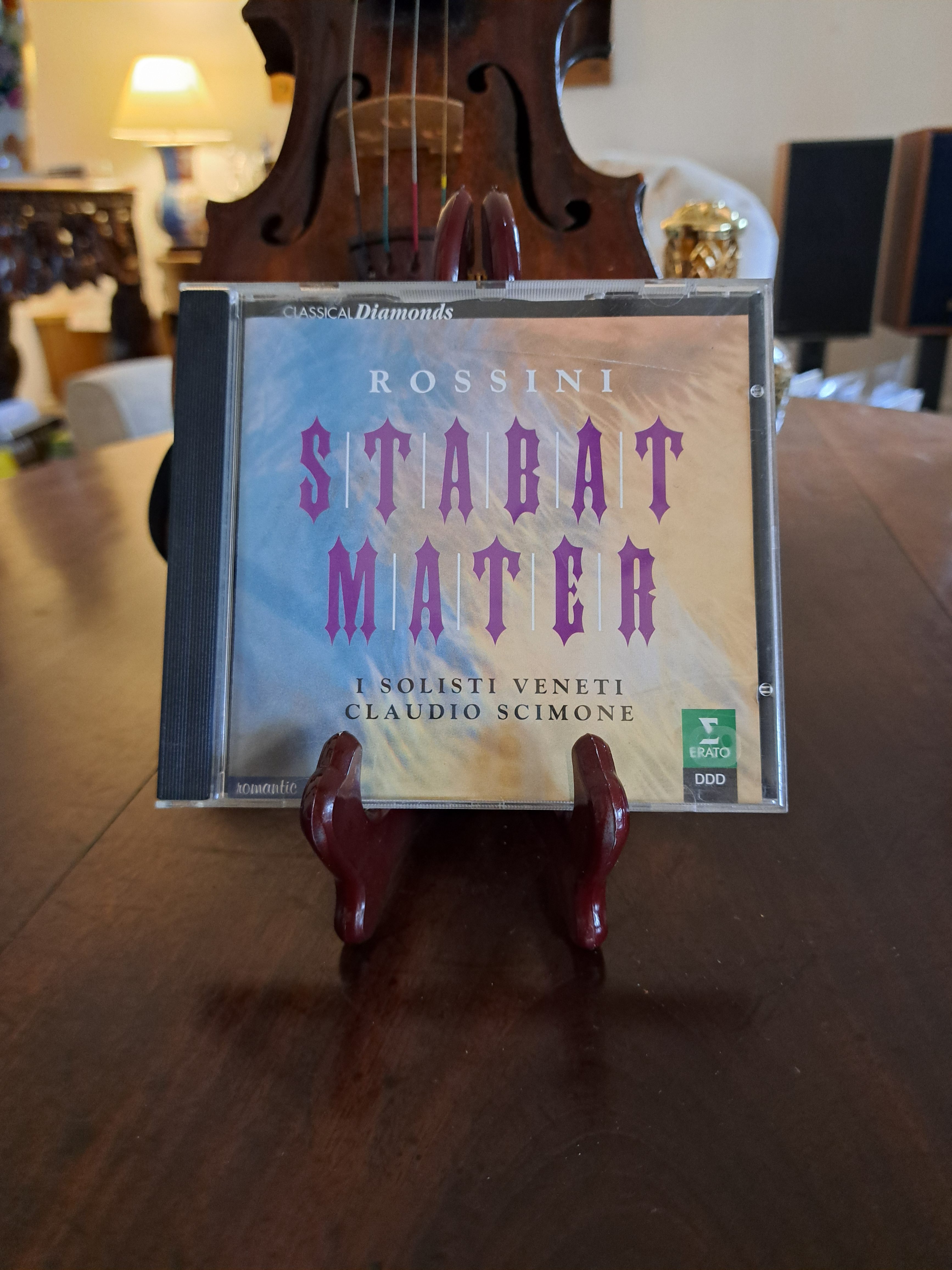 CD. Stabat Mater by Rossini. I Solisti Veneti – Claudio Scimone. Published by Erato on its Classical Diamonds label 1987. 10 tracks. 54.42 minutes.