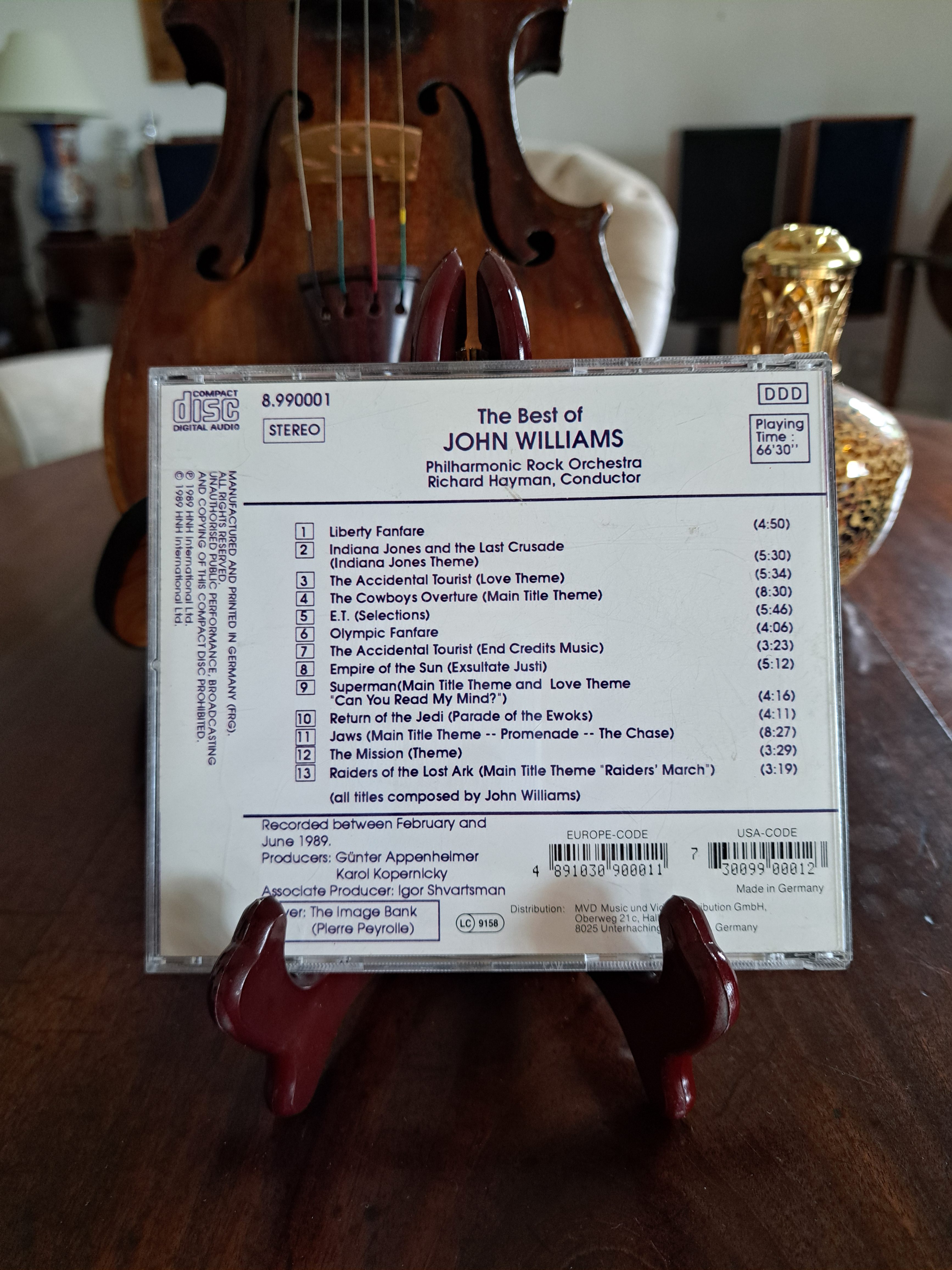A CD by Naxos International published 1989. Music Recorded 1989. 13 tracks of John Williams famous compositions for film. Playing time 66.30 minutes. The Philharmonic Rock Orchestra conducted by Richard Hayman.