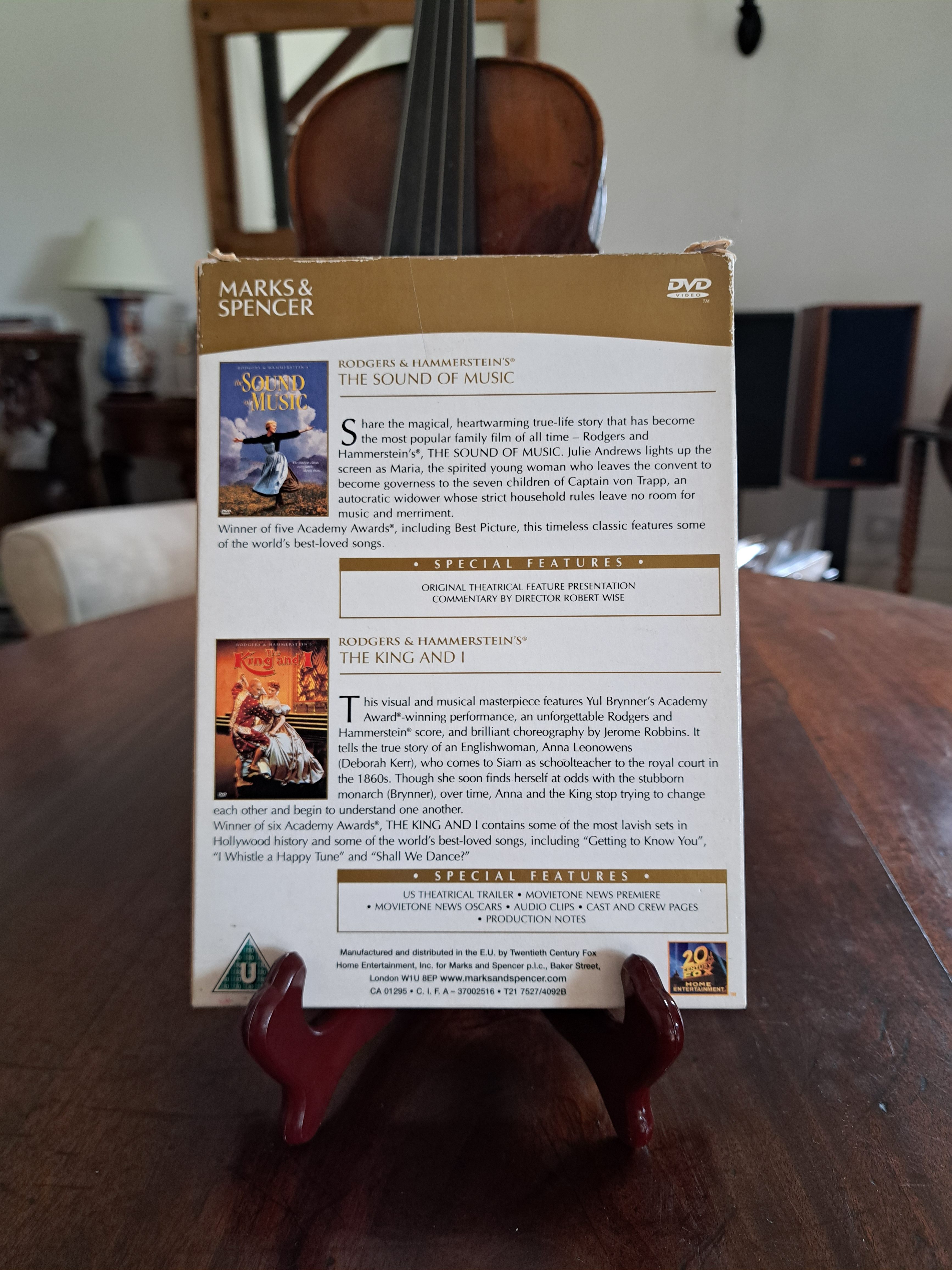 Two timeless classic Rodgers and Hammerstein films on DVD in a box set released via Marks and Spencer. The King and I, winner of six Academy wards with Yul Brynner and Deborah Kerr , and also the Sound of Music with Julie Andrews. Both include special features. A super and rather scarce box set.