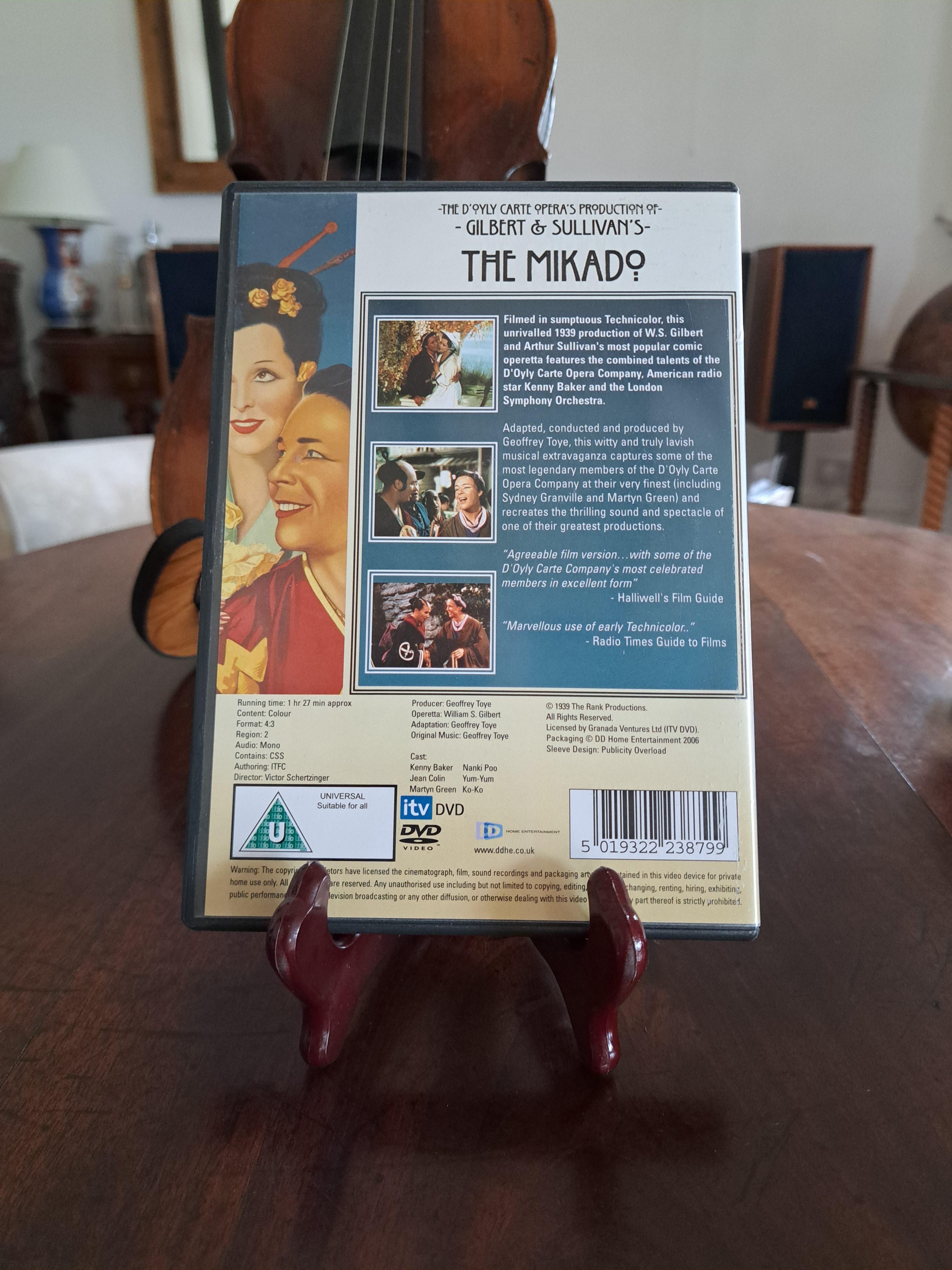 The classics 1939 techni-colour feature film starring Kenny Baker and Jean Colin. A single CD. Published 2006. 1 hour 27 minutes. Mono. 4:3 aspect ratio. This unrivalled 1939 production of Gilbert and Sullivan’s most popular comic operetta features the combined talent of the D’Oyly Carte Opera Company, Kenny Baker and the London Symphony Orchestra.