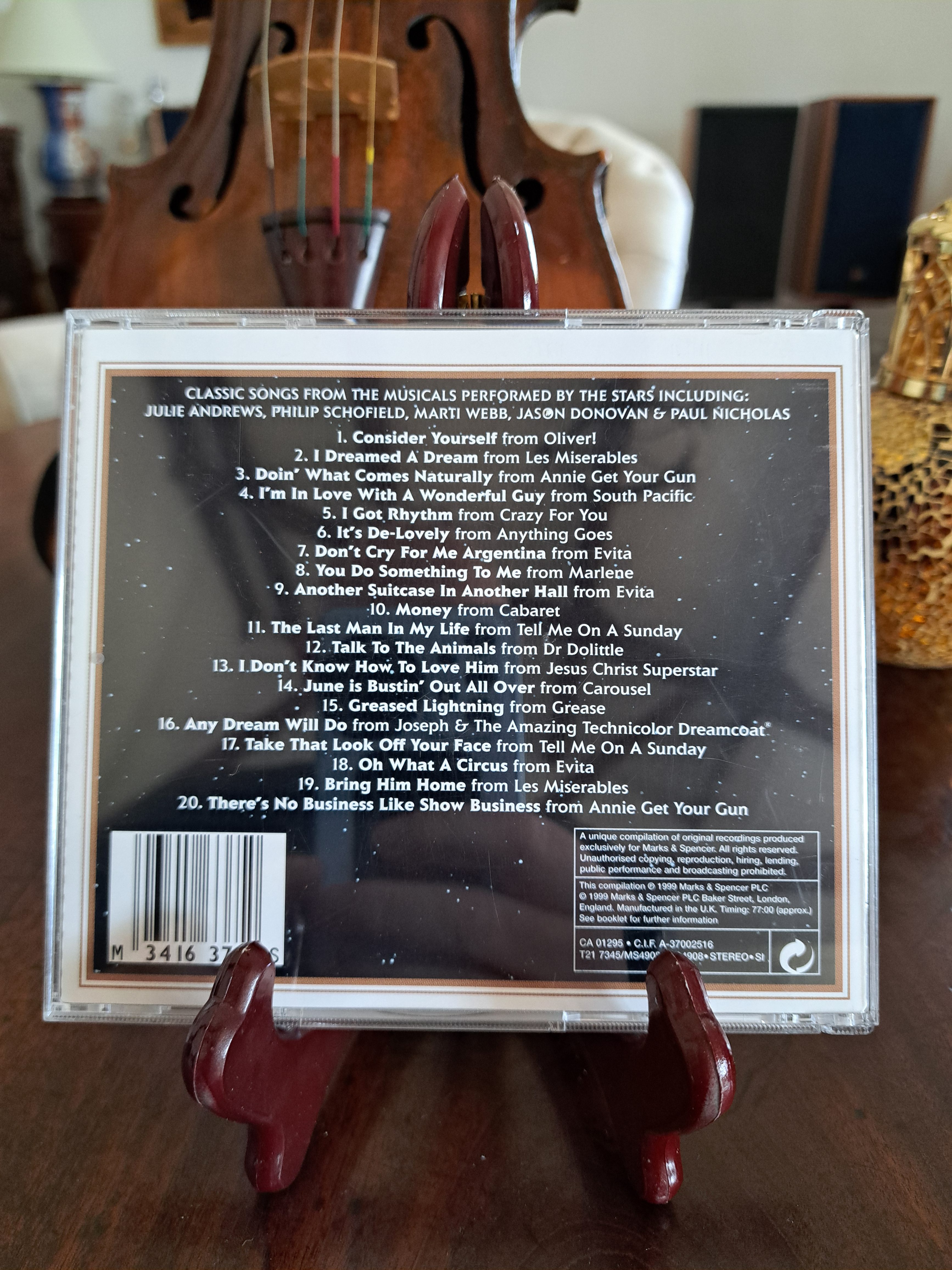 A CD of classic songs from the musicals including: Evita, Oliver, Jesus Christ Superstar, Grease and Les Miserables. 20 tracks. Published 1999. Original artists Jason Donovan and Paul Nicholas.