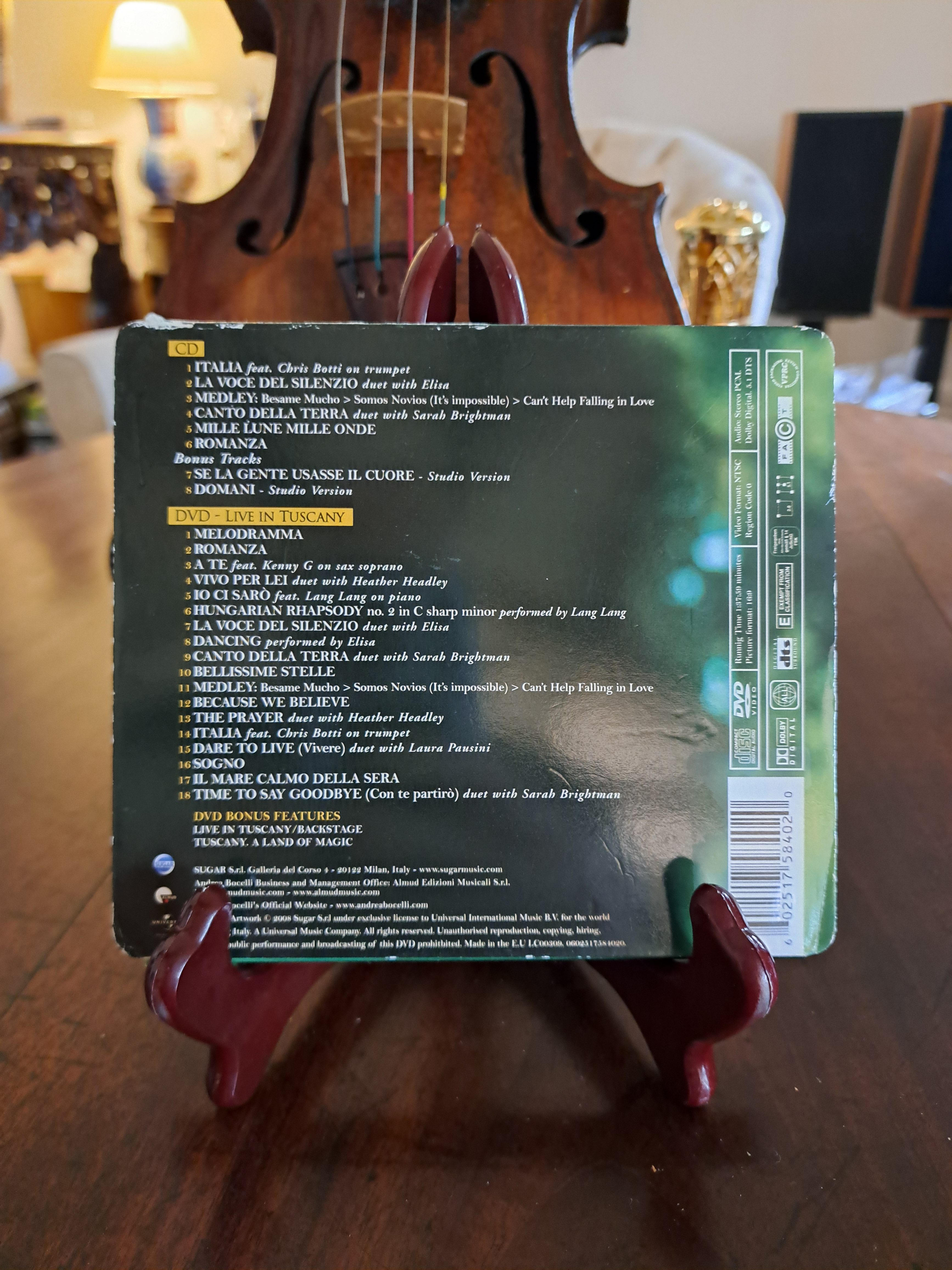 CD and DVD in this nicely presented package. Andre Bocelli – One Night in Tuscany. The tenor performs all his classic hits. 8 tracks on the CD. 18 tracks on the DVD plus bonus features – 1 hour 37 minutes. Widescreen. Dolby Digital.